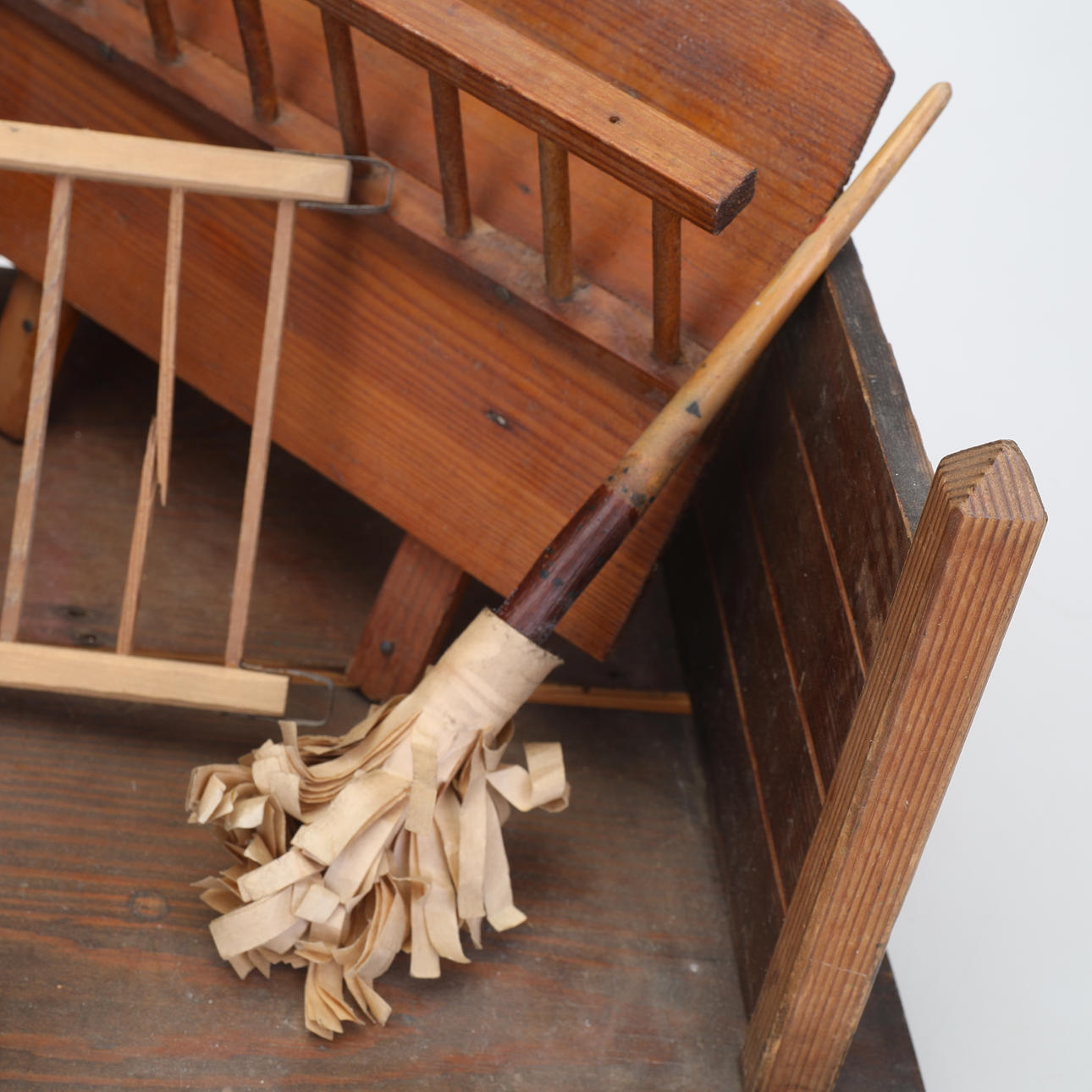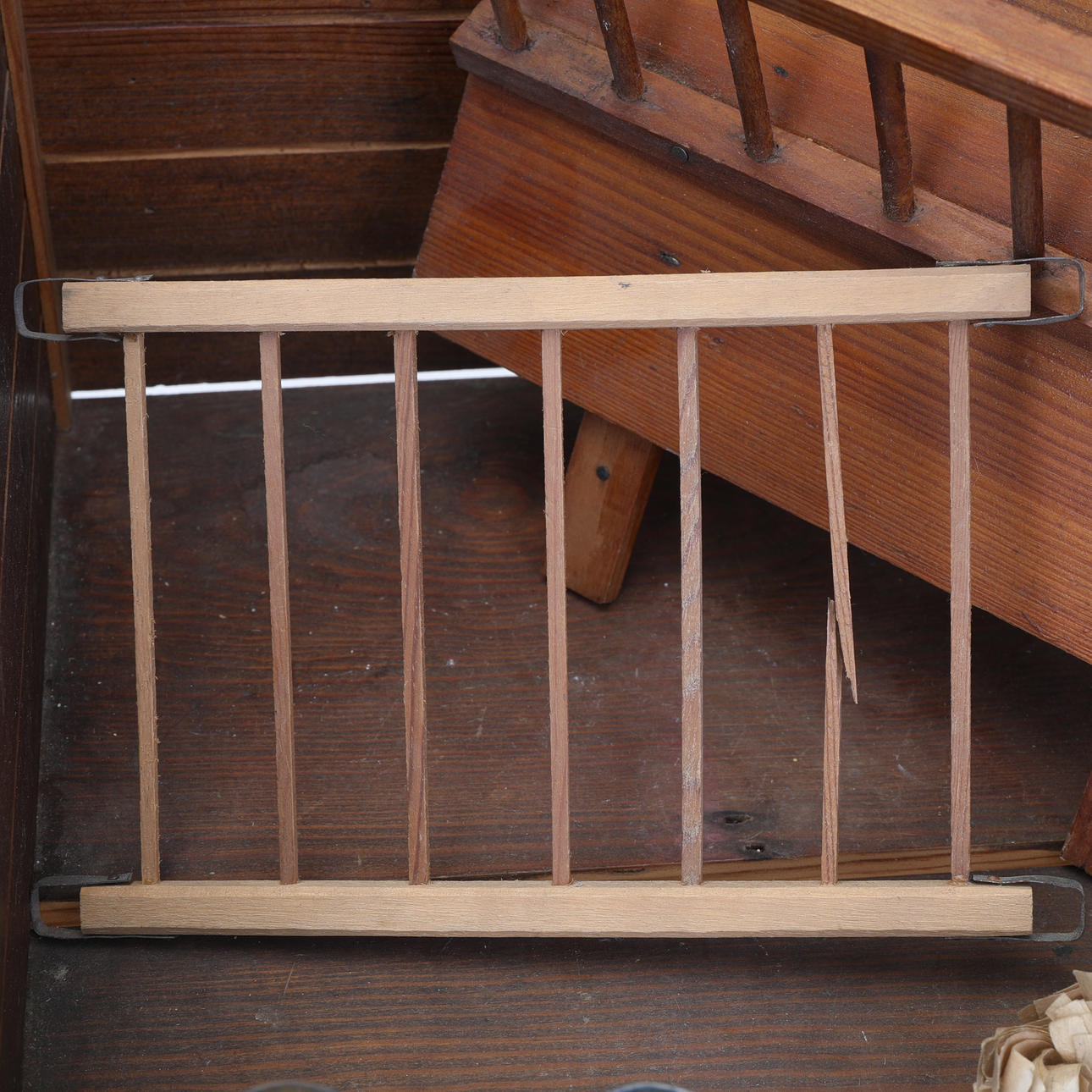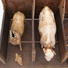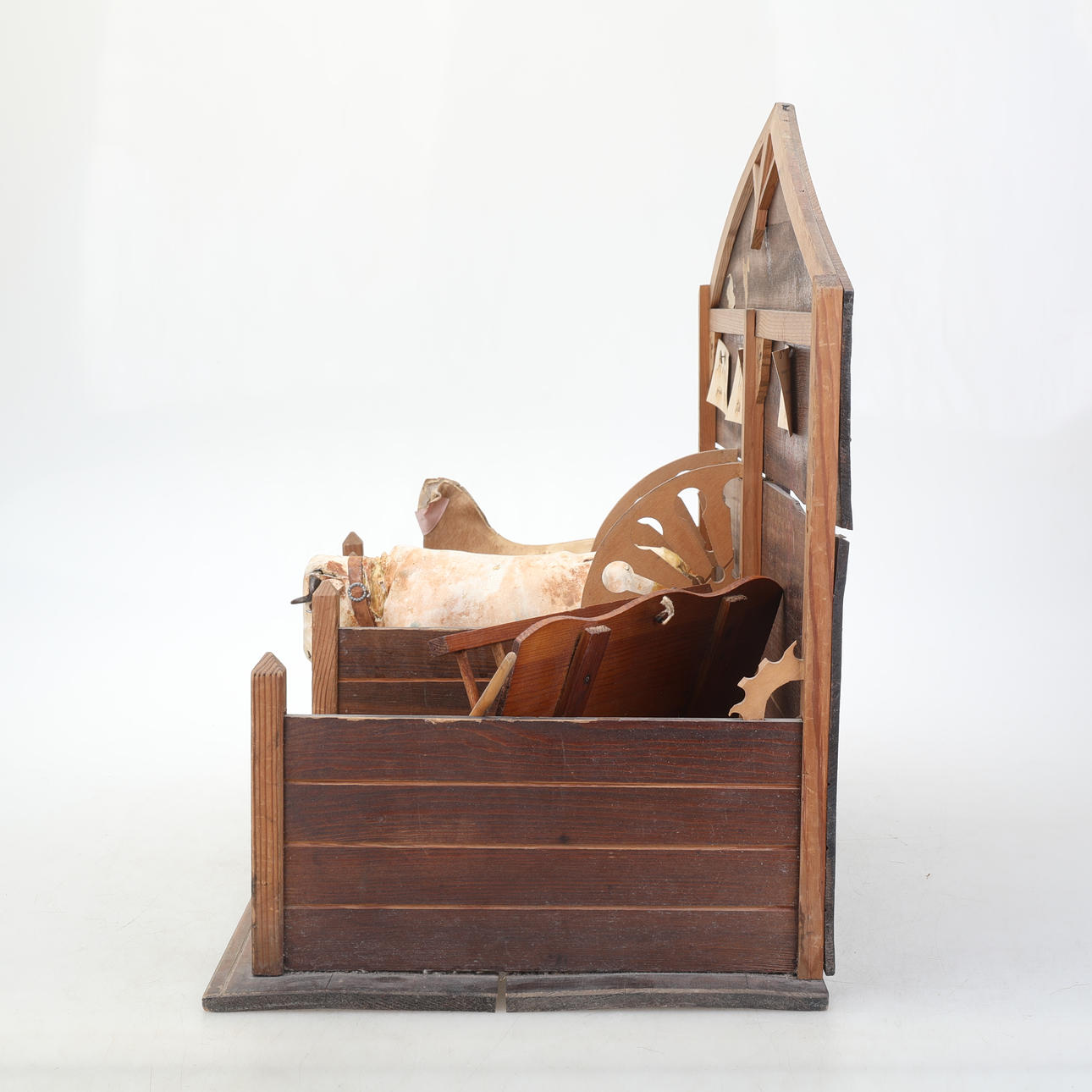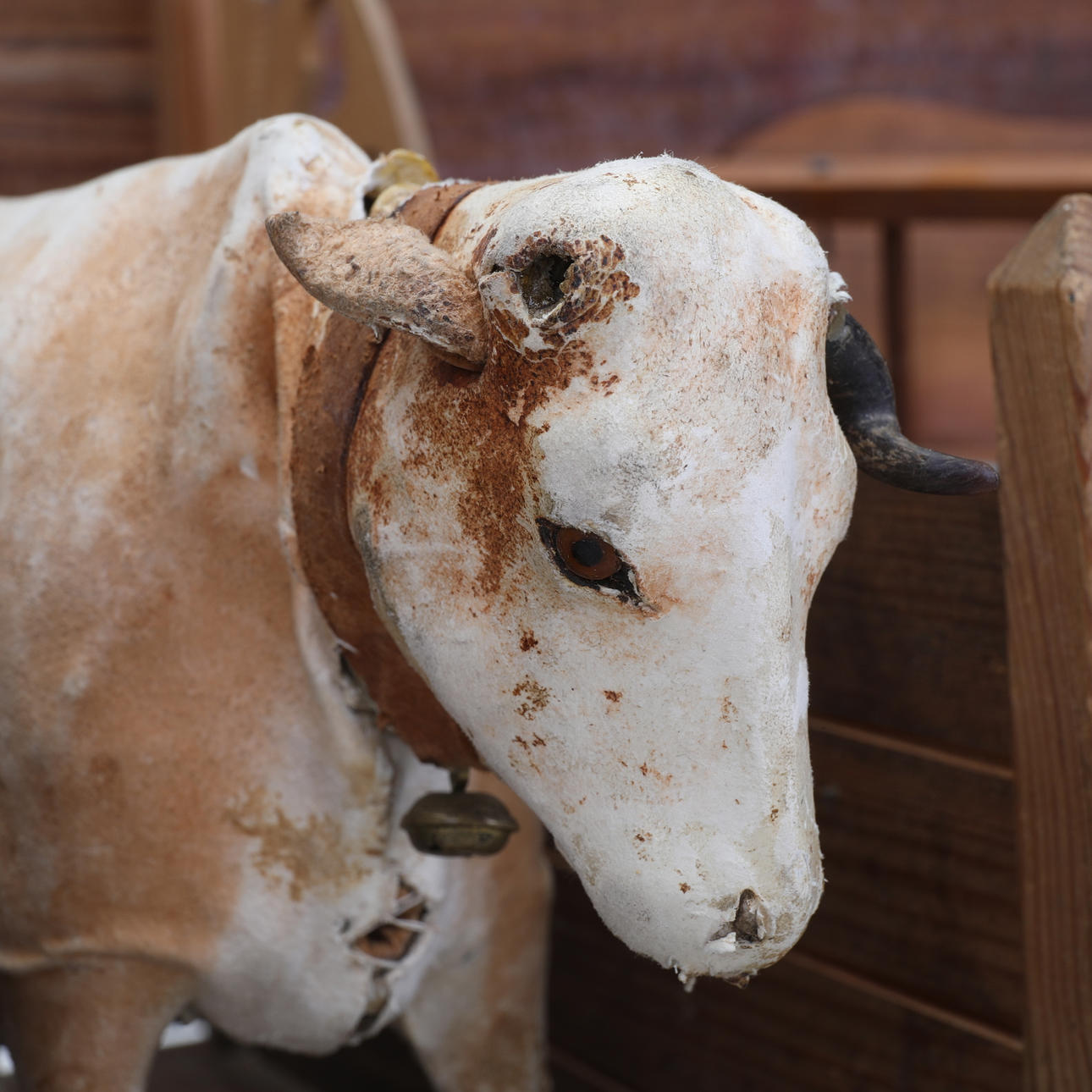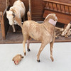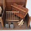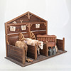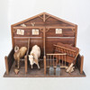 Ett stall, bondgård i trä med en häst och en ko, båda klädda i läder. Mått ca längd: 60 x djup: 29 x höjd: 44 cm.