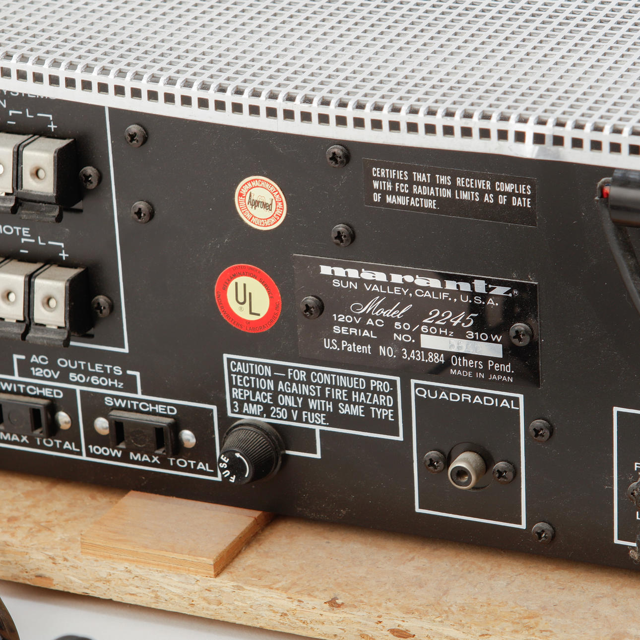 Märken, fläckar, mindre fanérskador och lagningar på fodralet. Ingen funktionsgaranti lämnas.