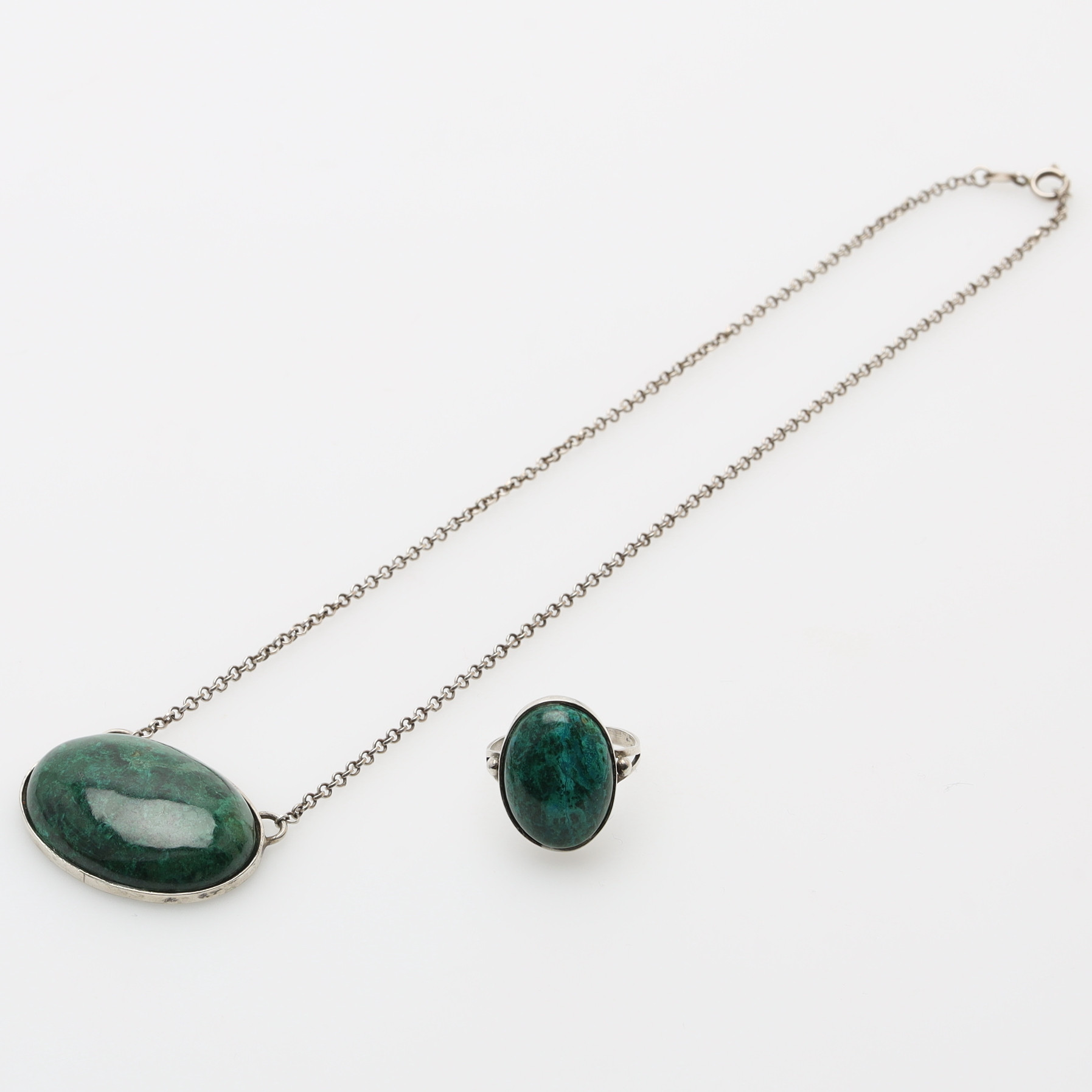 3293034. COLLIER & RING, silver, krysokolla sten, Uruguay.