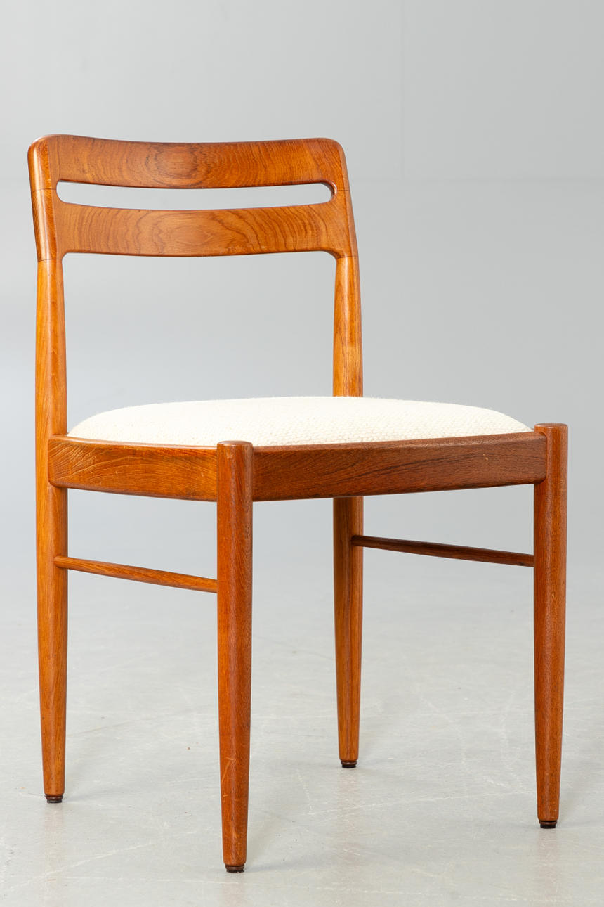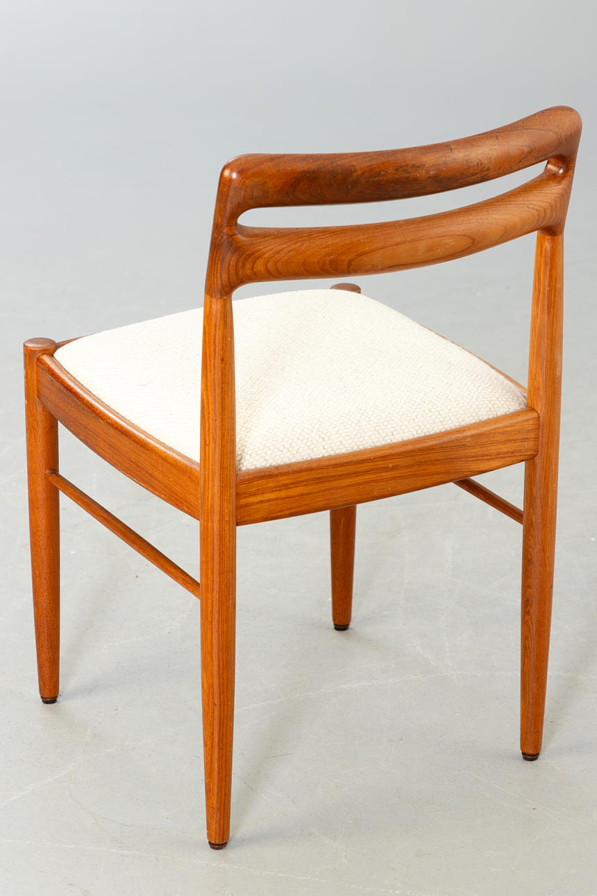 Danmark, 1960-tal. Massivt teakträ, beige ullsits.
