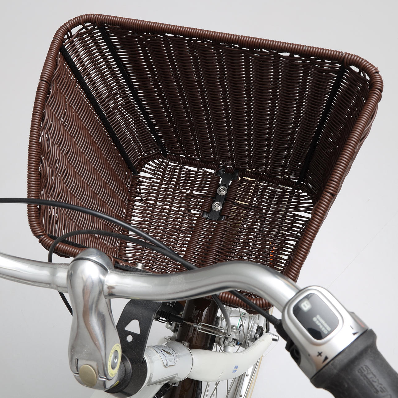 Cykelkorg i fllätad plast, sadel Selle Royal.