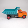 Kranbil "Daiya" längd 15 cm. Lastbil med flak plåt och plast "Alps" batteridrift längd 32 cm. Långtradare med släp plåt märkt "Japan".