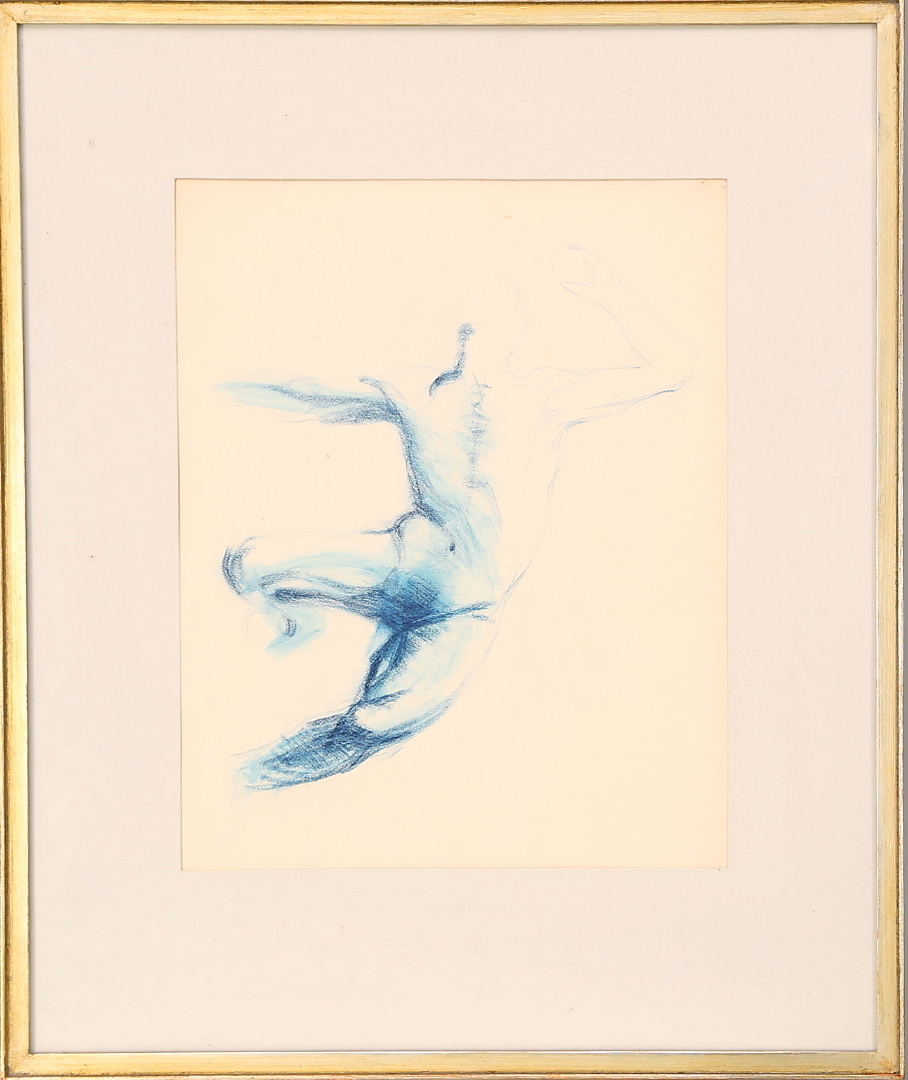 329543. FOLKE DAHLBERG. TILLSKRIVEN. Teckning, blå krita, osignerad.