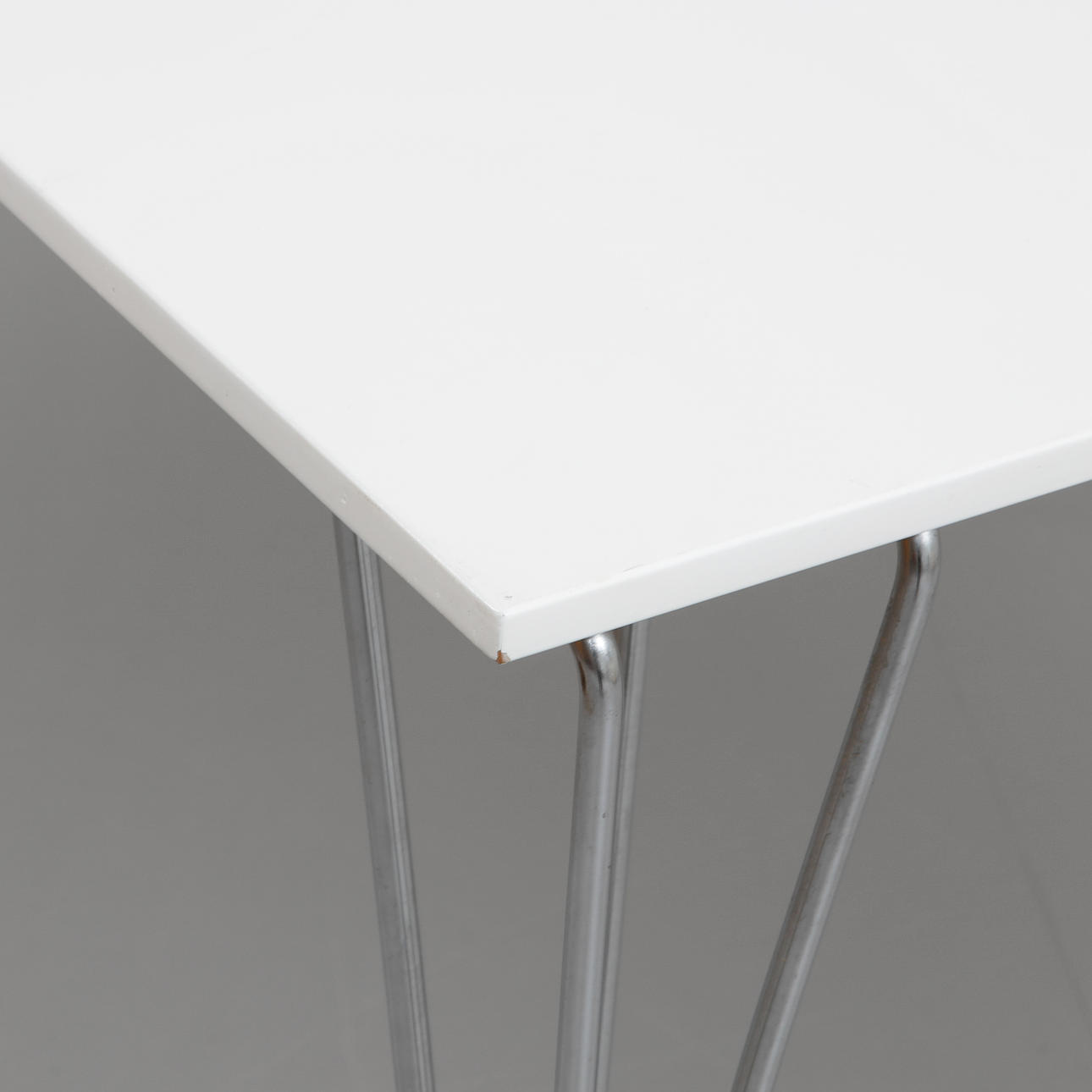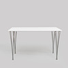 etikettmärkt, vit laminatskiva, stålben, längd 120 cm, bredd 60 cm, höjd 70 cm.