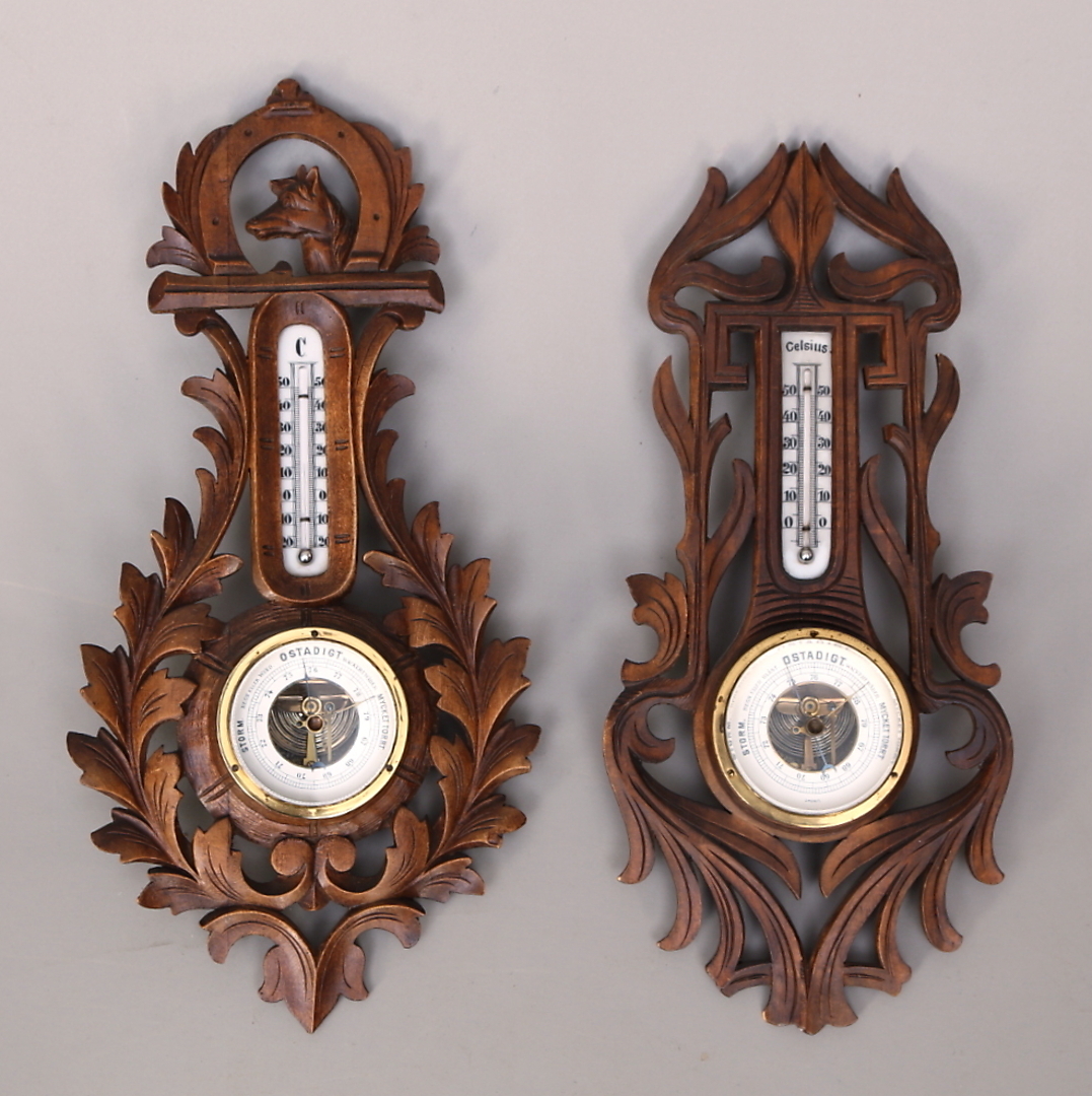 330065. BAROMETER 2 st, träskuren dekor , 1900-tal.