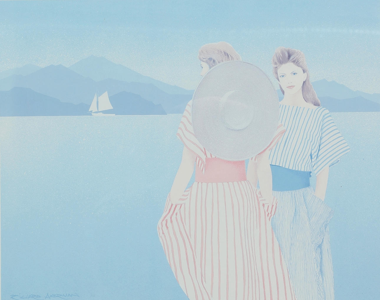 RICHARD AKERMAN. tryck efter, kustmotiv, tryckt signatur.