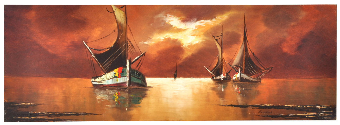 330488. SIGNIERT BONNARD. Flatships och plattbåtar vid gryningen.