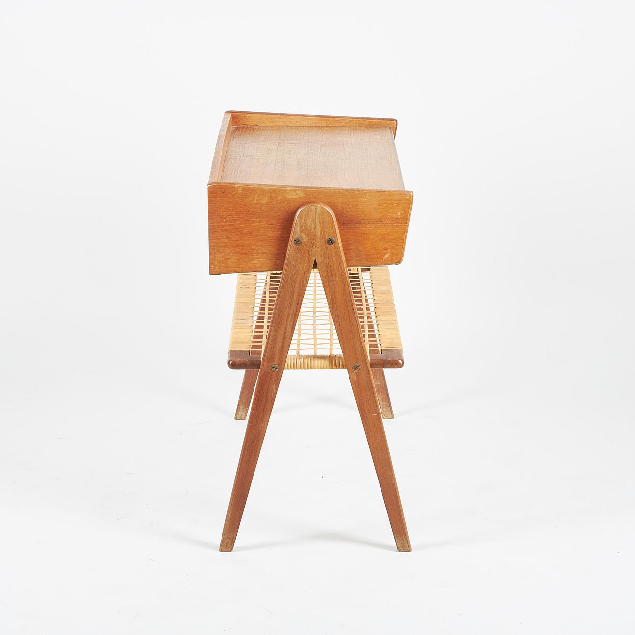 Teakfaner, rotting, 2 lådor. Höjd 59 cm, 61 x 31 cm.