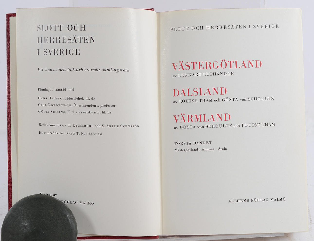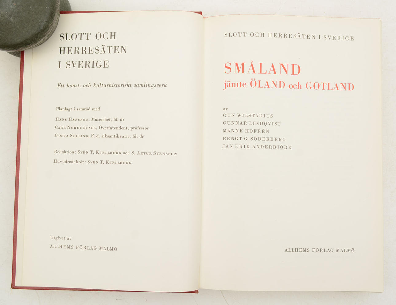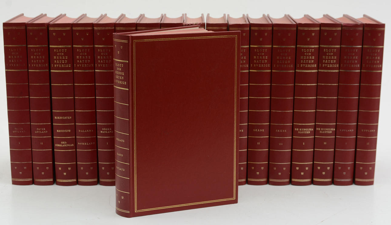 Sven T. Kjellberg:. 18 volymer. Ett konst- och kulturhistoriskt samlingsverk: Skåne I-III; Uppland I-II; Halland, Bohuslän, Blekinge; Södermanland I-II; Västergötland, Dalsland, Värmland I-II; Dalarna, Norrland; Närke, Västmanland; Småland, Öland, Gotland; Östergötland I-II; De kungliga slotten I-II; Riksfästen, Residens, Ordförklaringar.