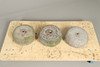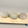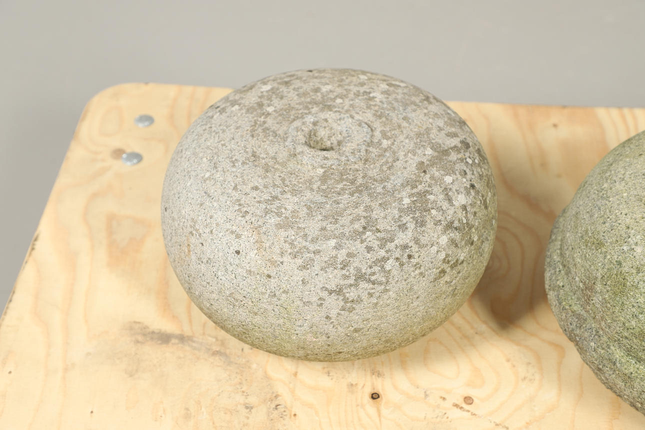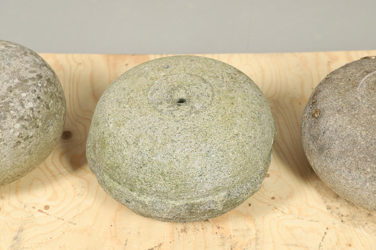 Tre krullstenar i granit (saknar numera handtag), ca 27cm i diameter.