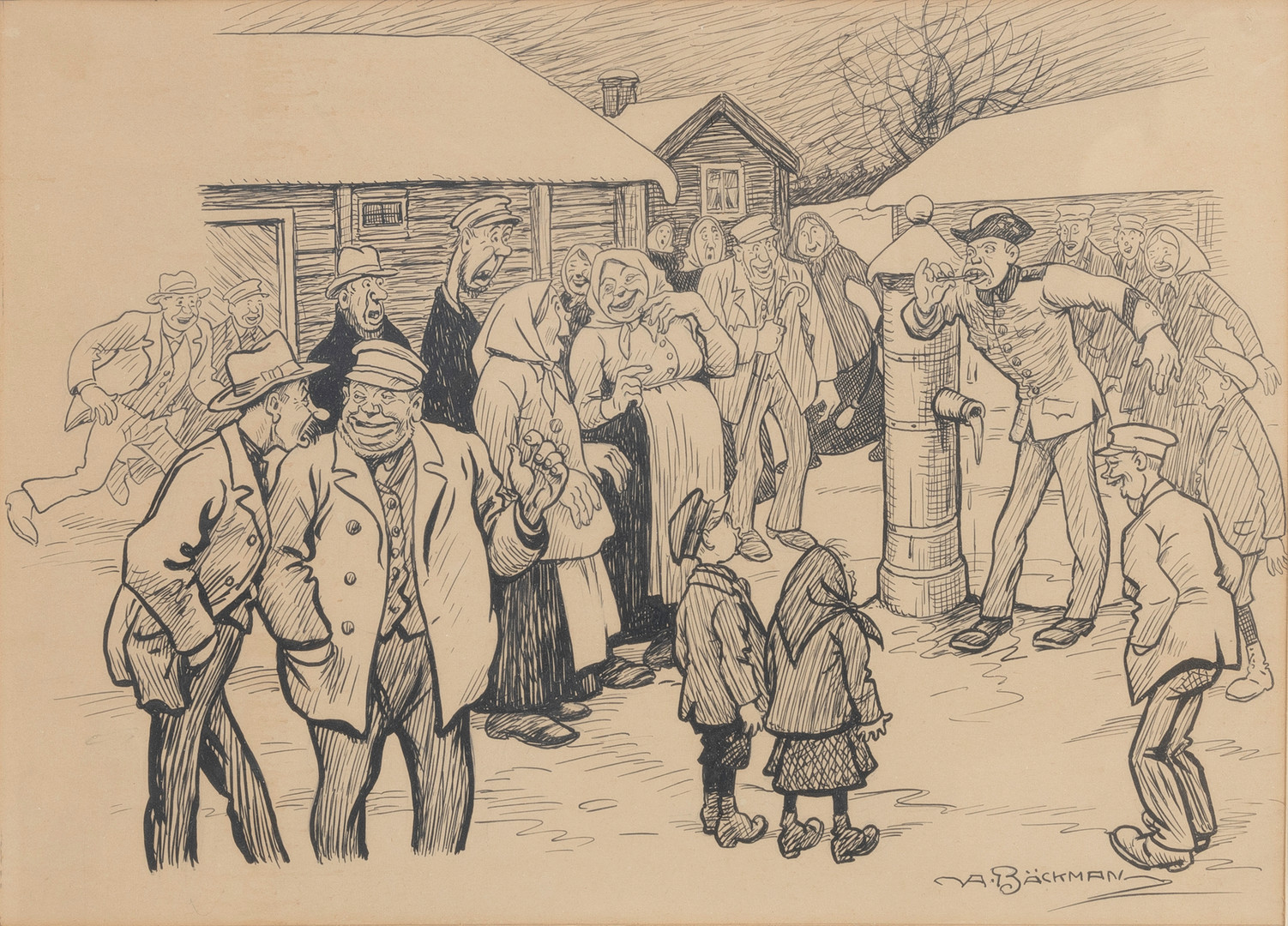 3310531. AXEL BÄCKMAN (1868-1941). Tuschteckning, sign.