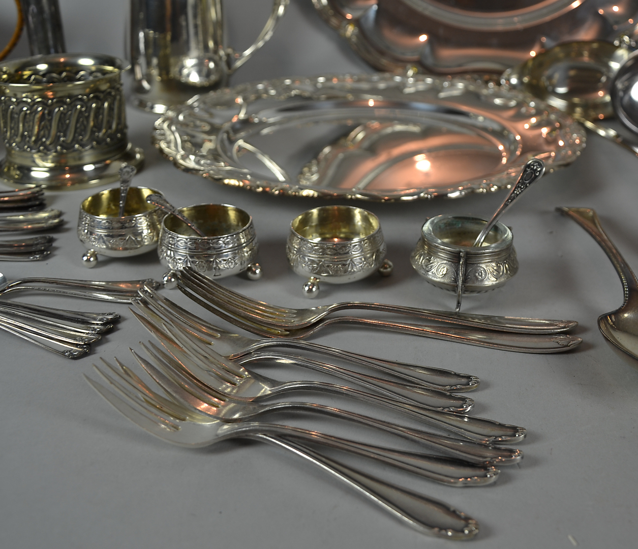 331193. BLANDAT PARTI SILVERPLÄTERADE BESTICK OCH KADAVER.