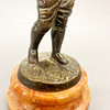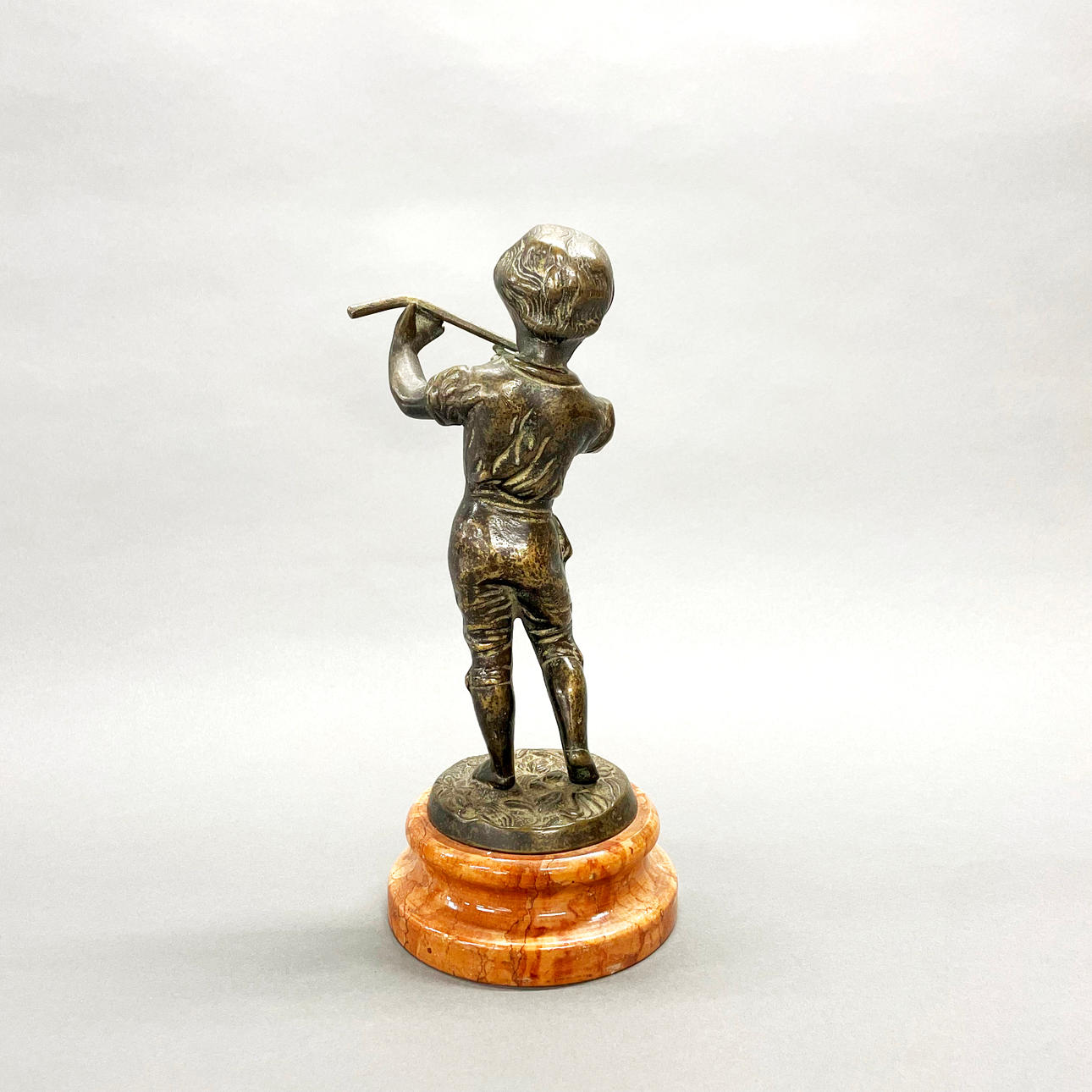 FIGUR, brons av pojke som spelar flöjt på marmorbotten, H. 27cm.