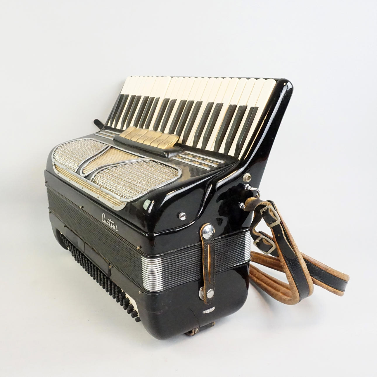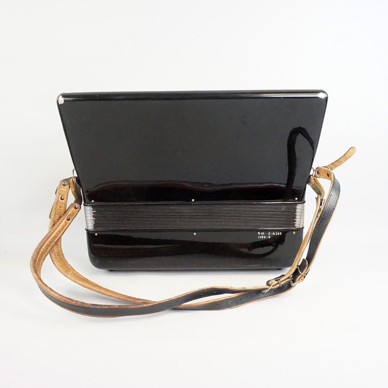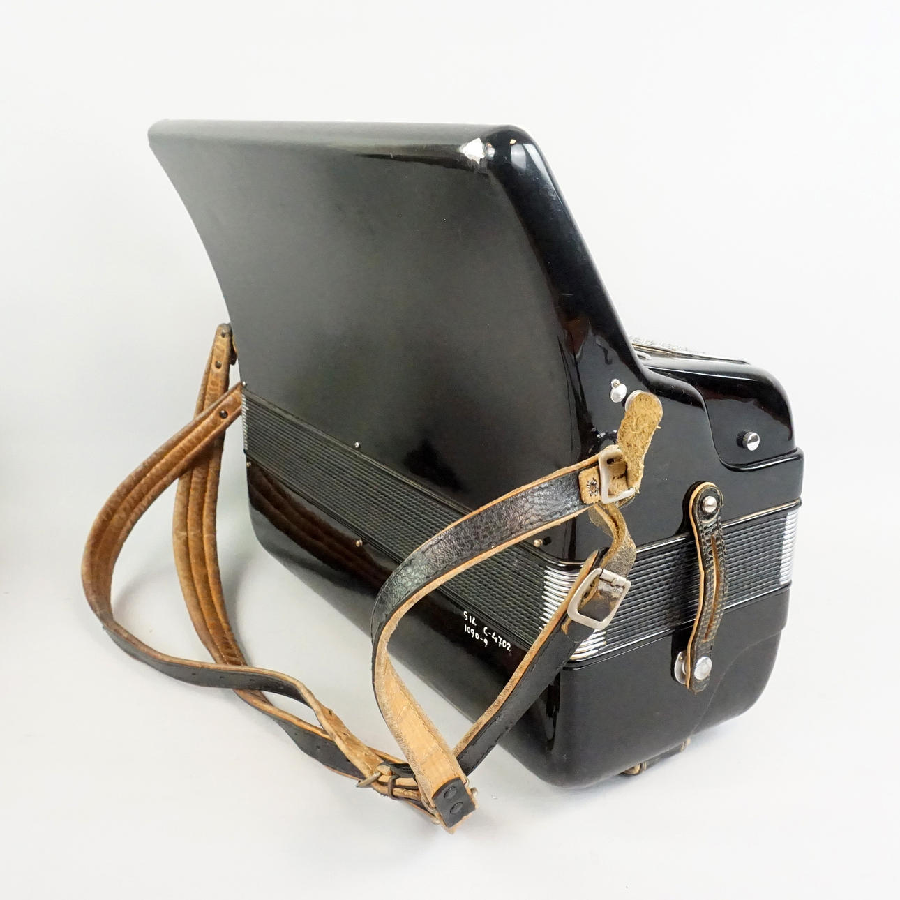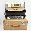 Bruksslitage, märken, avslag på dragspelets ena hörn, väskan har en skada på ena sidan, Fungerar vid test Funktionsgaranti kan ej lämnas.