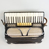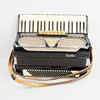 Dragspel med väska. längd ca 40 cm när bälgen är i hoptryckt, bredd ca 49 cm, djup ca 21cm.