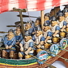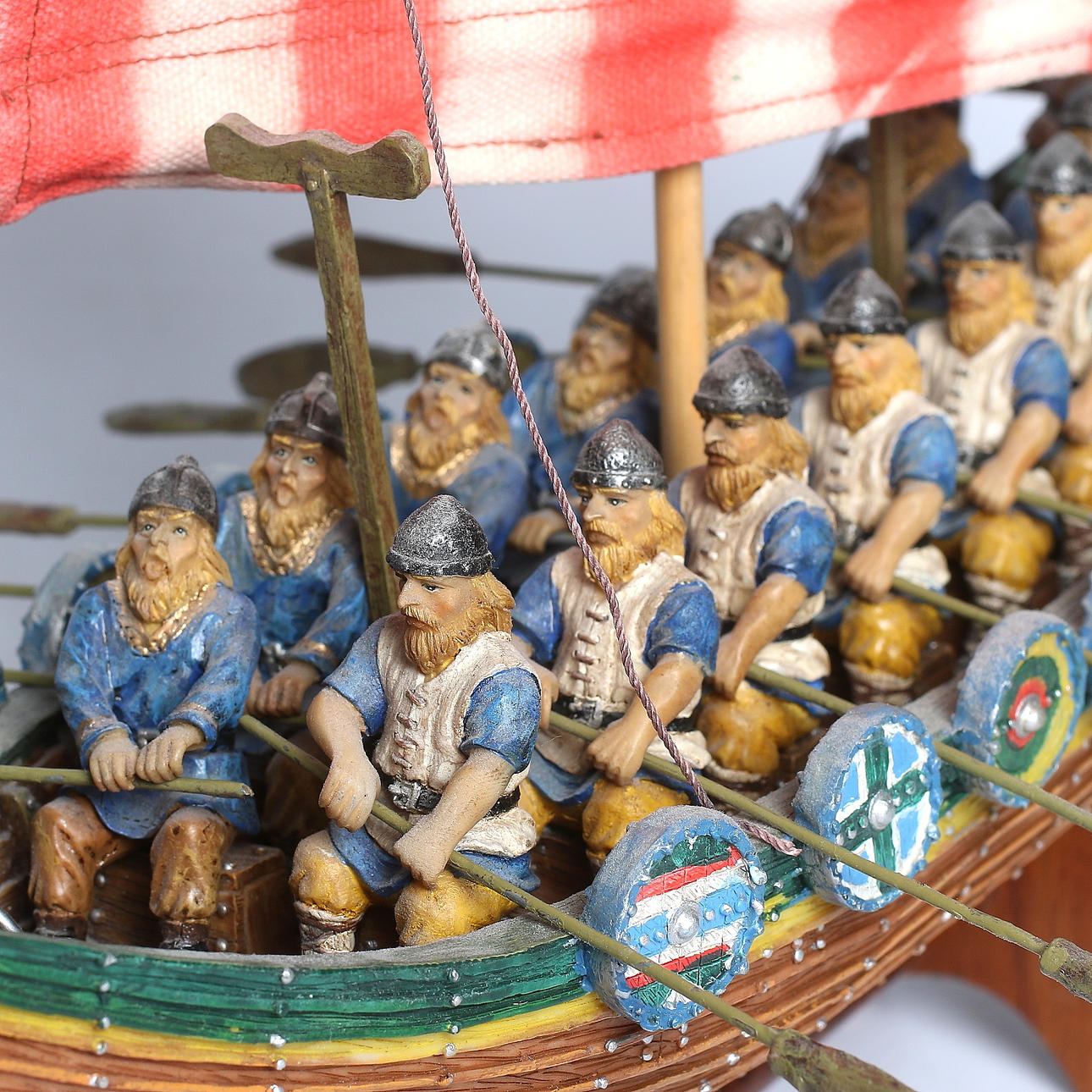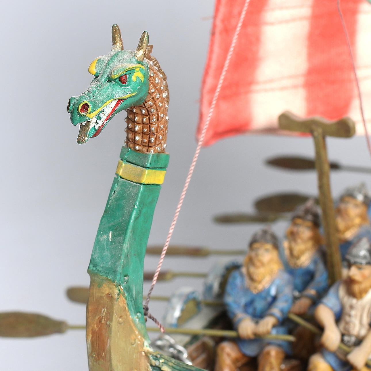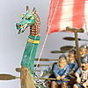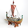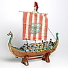 Modellbåt och vikingafigurer i kompositmaterial. Längd 40 cm.