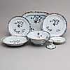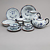 4 assietter med nagg 1 med spricka, 2 tefat naggade, 2 tekoppar med nagg, 4 kaffefat med nagg, 1 kaffekopp med nagg, 4 skålar med sprickor, 6 tallrikar med nagg, eventuellt mer skador.