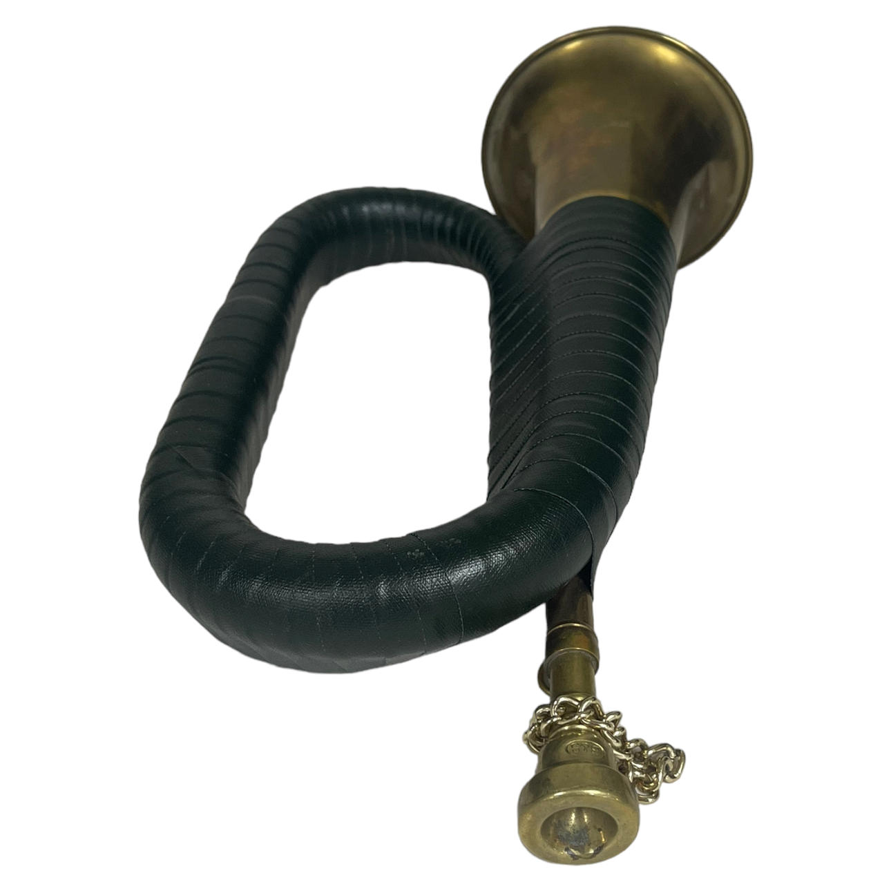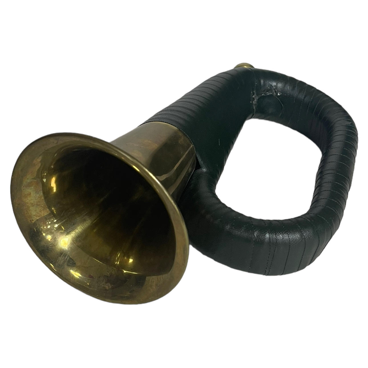 JÄGARHORN, mässing/läder, 1900-tal.