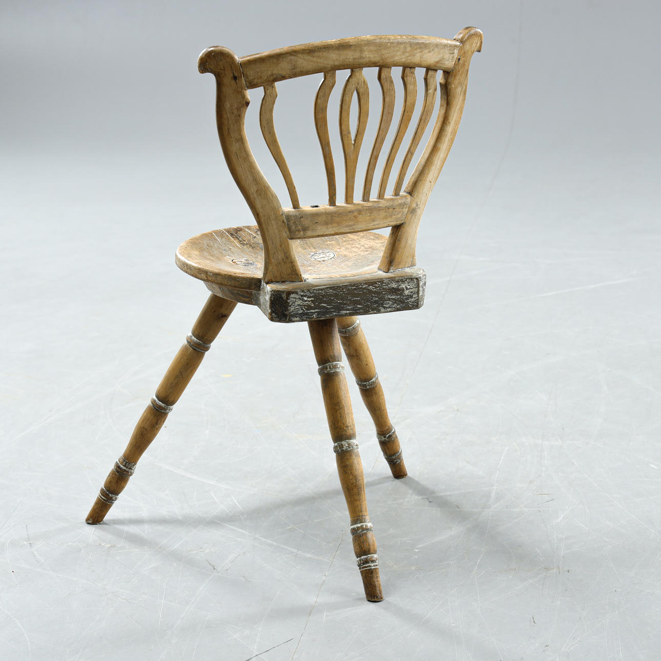 Trären med spår av tidigare bemålning. Sitshöjd 44 cm.