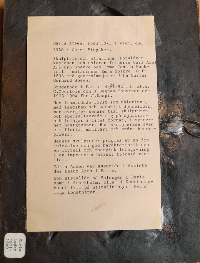 332297. MÄRTA AMÉEN. VÄGGRELIEF, brons, slädtur, signerad.