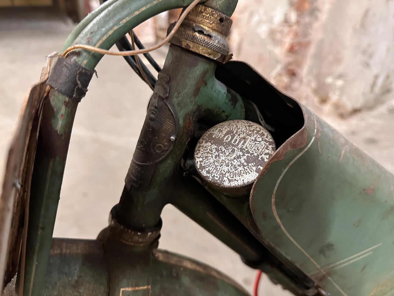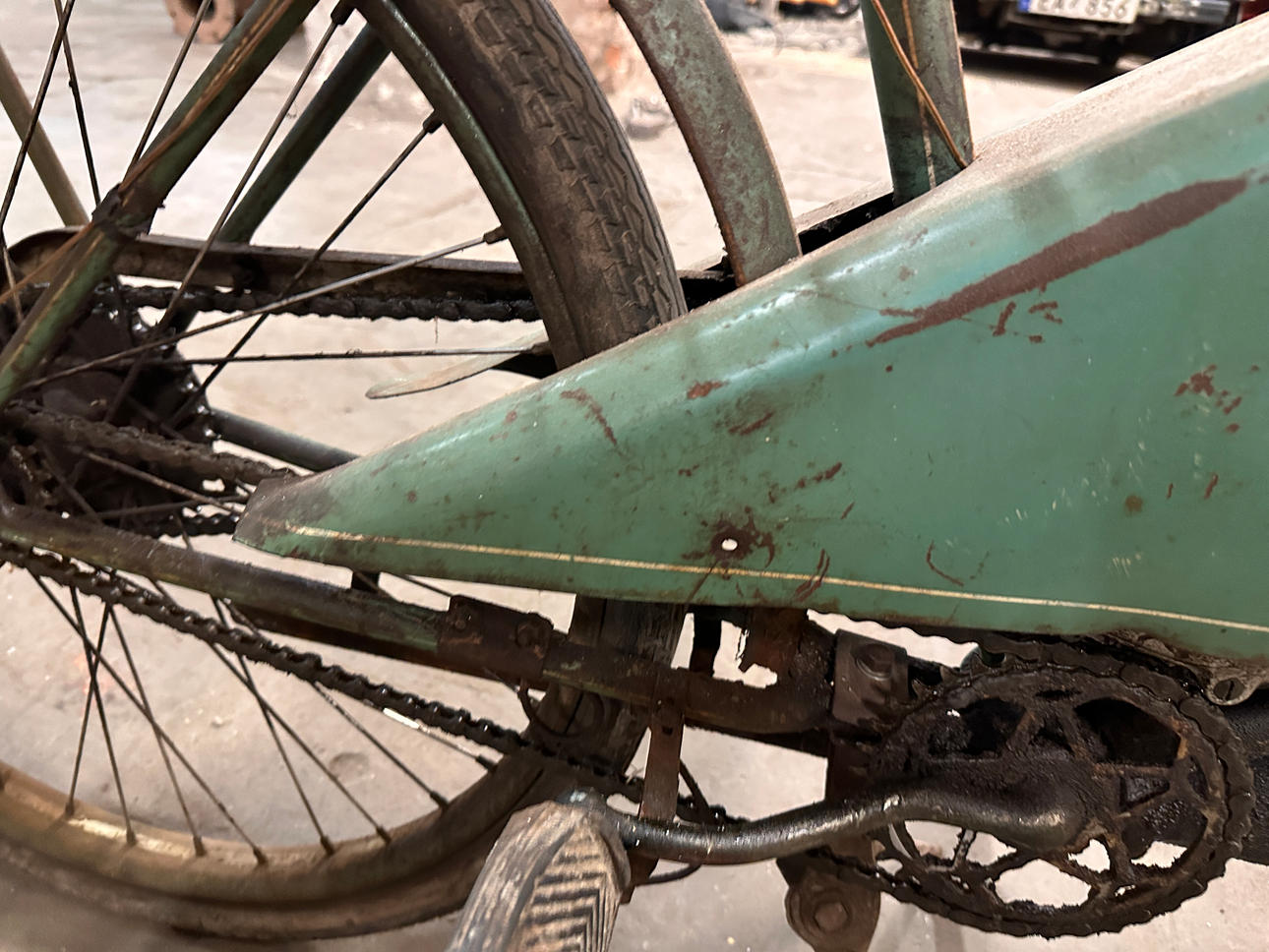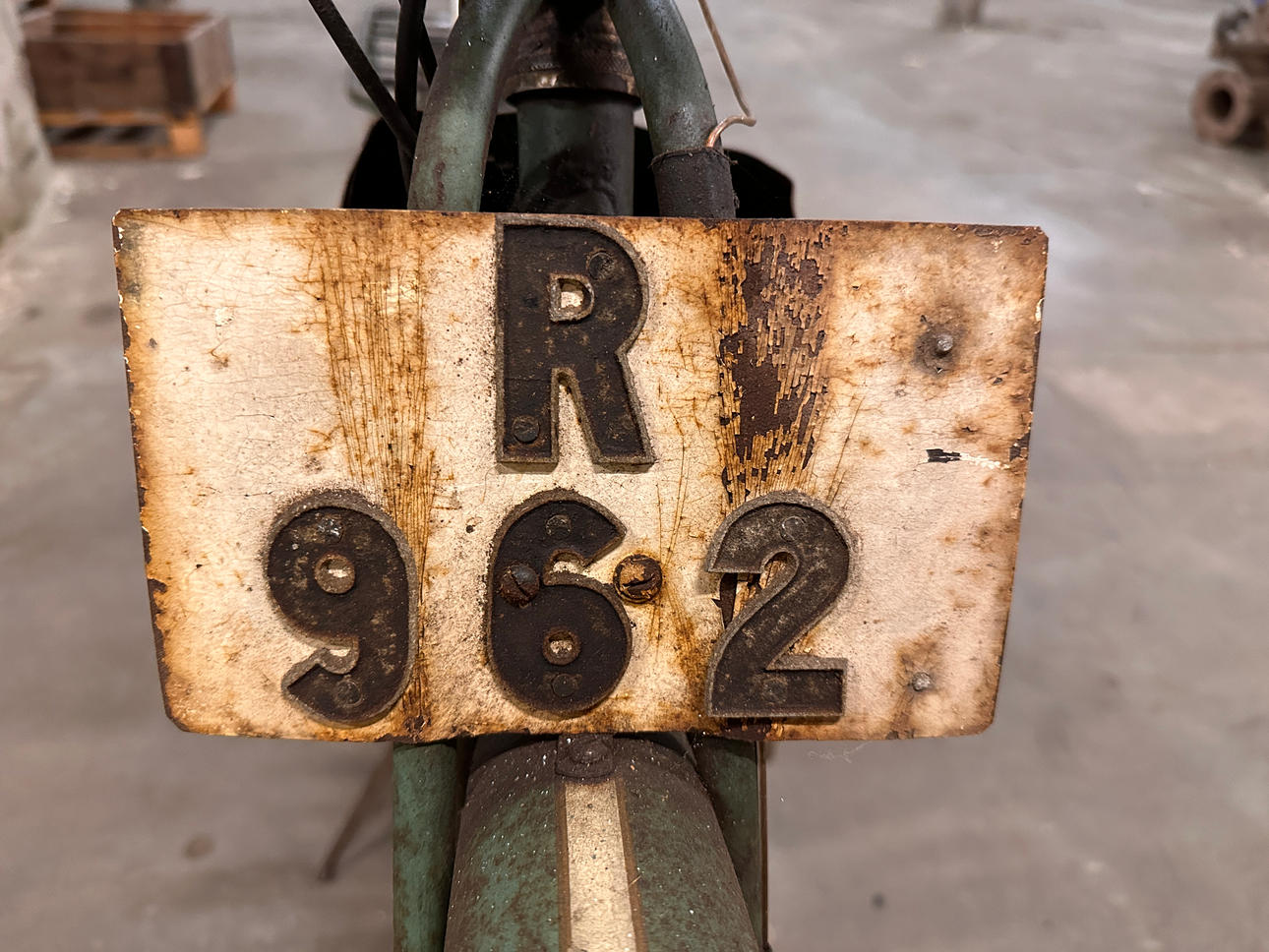 Äldre registreringsskylt finns R962. Inga papper finns.