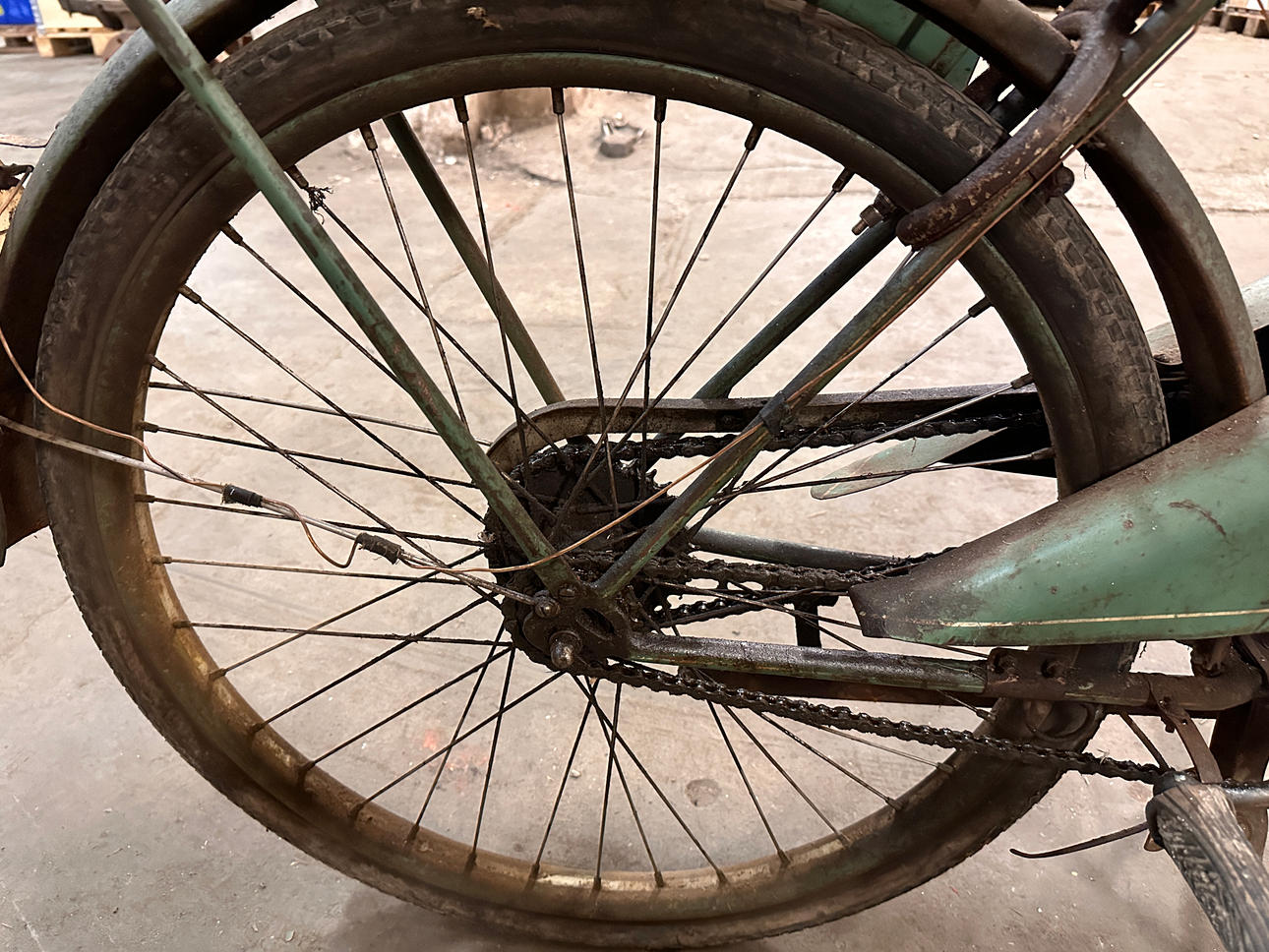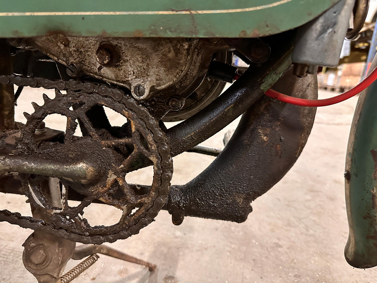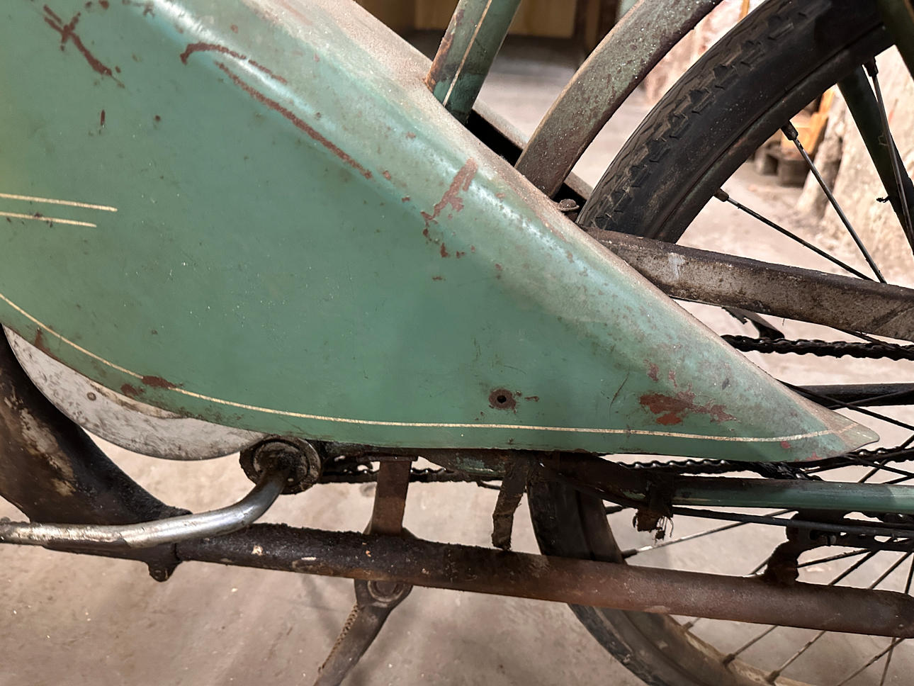 Äldre registreringsskylt finns R962. Inga papper finns.