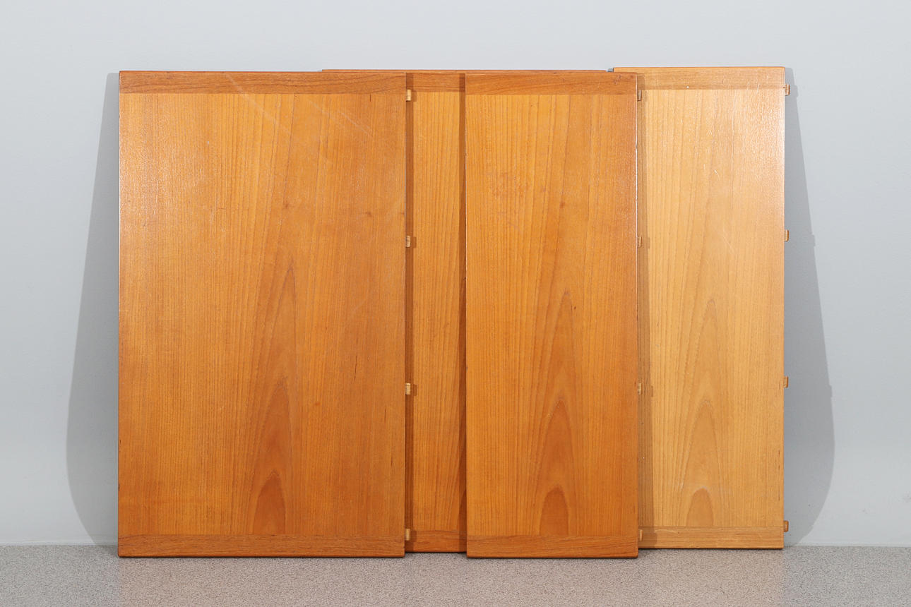 Höjd 74, skivans 159x102 cm. Fyra iläggsskivor, två á 36 cm/st och två á 60 cm/st medföljer. Proveniens: Hotel Chaplin, Landskrona.