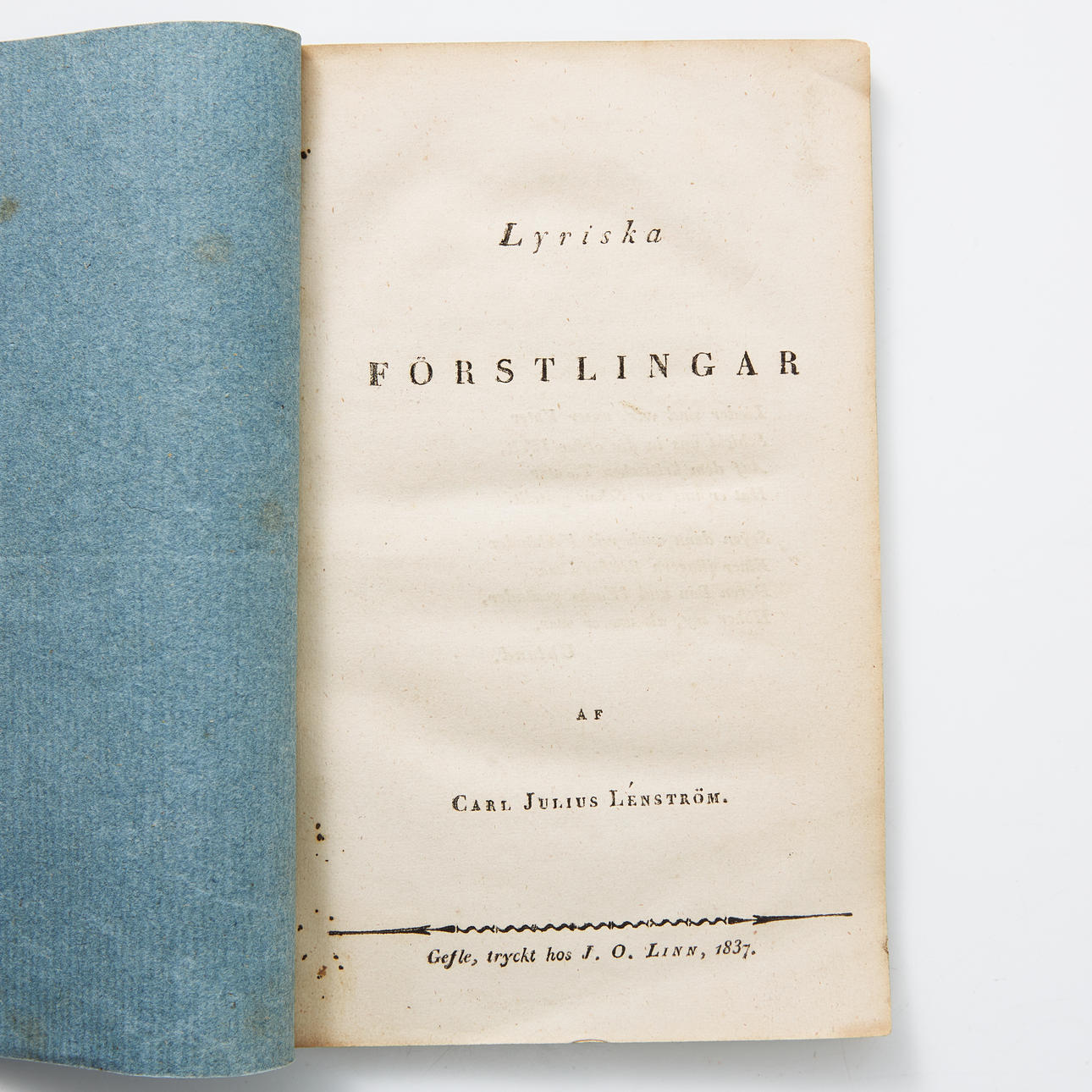 LÉNSTRÖM, CARL JULIUS. Lyriska förstlingar. Gävle, J. O. Linn, 1837.
