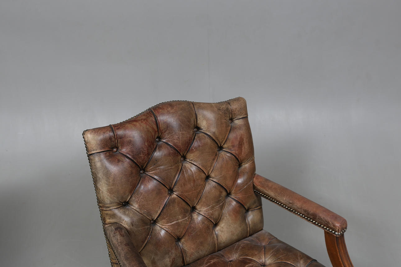 Nött klädsel, fläckar. Stomme med repor, slagmärken.