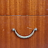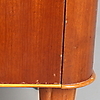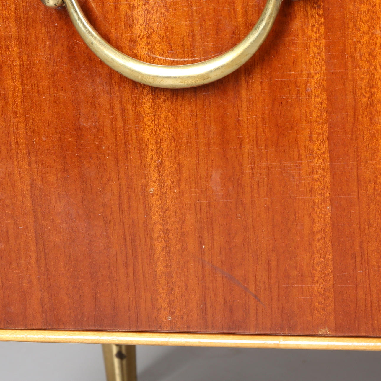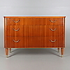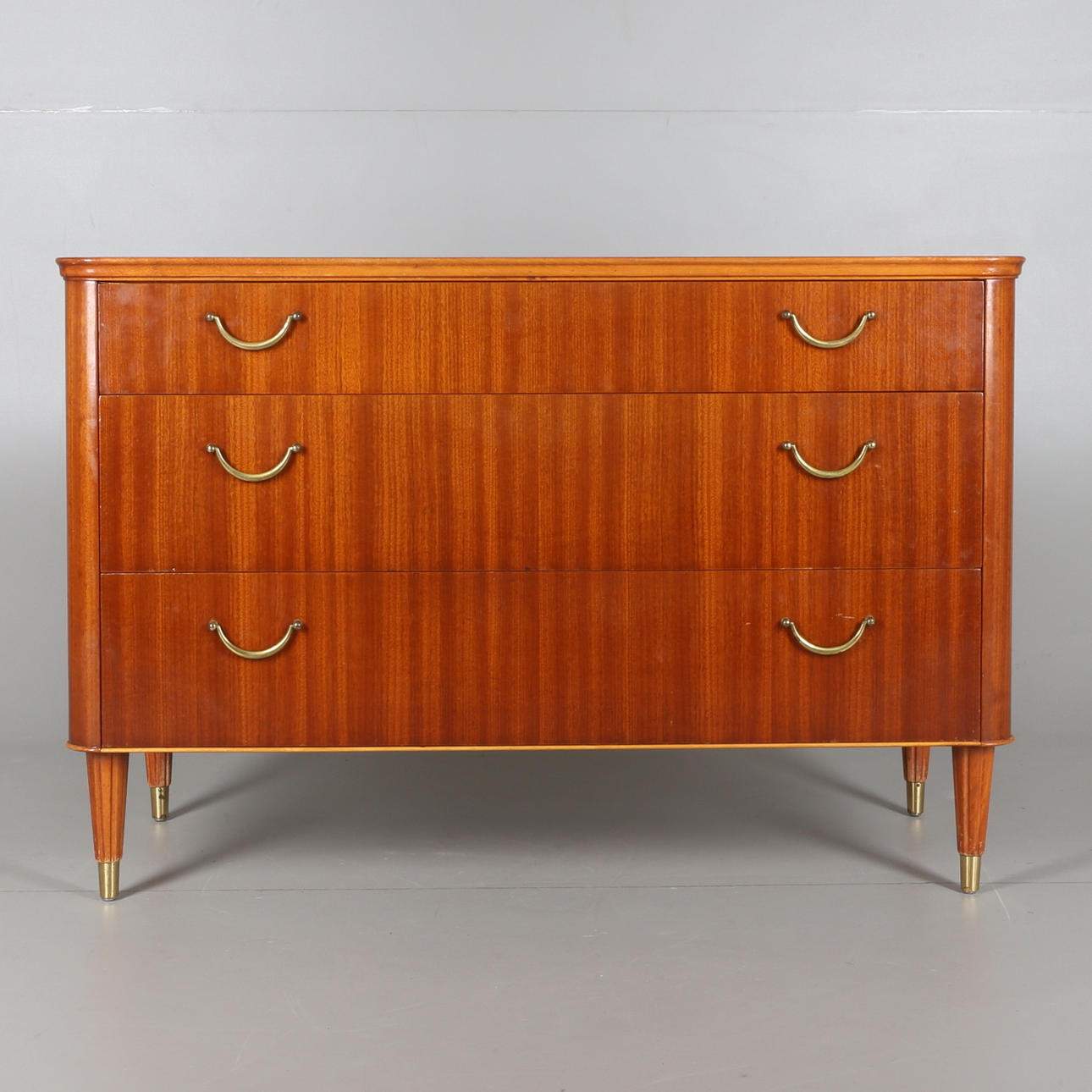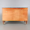 På fyra ben med mässingsfötter. Tre lådor med mässingshandtag. Längd 105 cm. Bredd 45 cm. Höjd 70 cm.