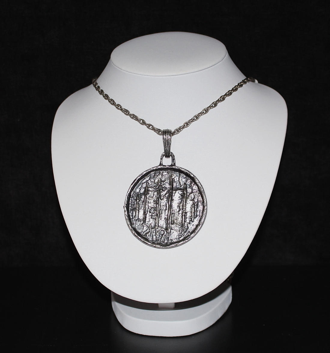 halskedja längd 72 cm, hänge, diameter 6 cm.