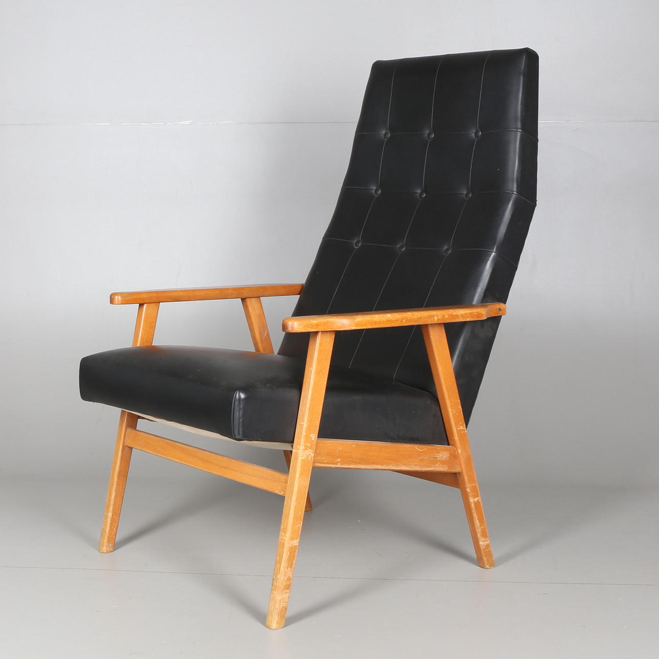 332901. KARMSTOL, trä och skinn, 1900-tal.