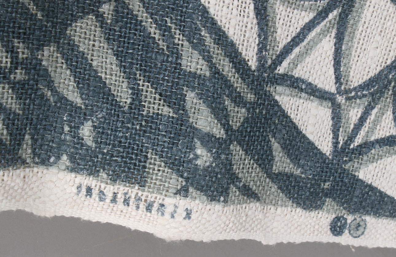 1 Bonad, signerad "Silia", ca 78 x 57 cm 2 gardinlängder, otydlig märkning, ca 250 x 120 cm 2 gardinlängder, ca 225 x 82 cm.