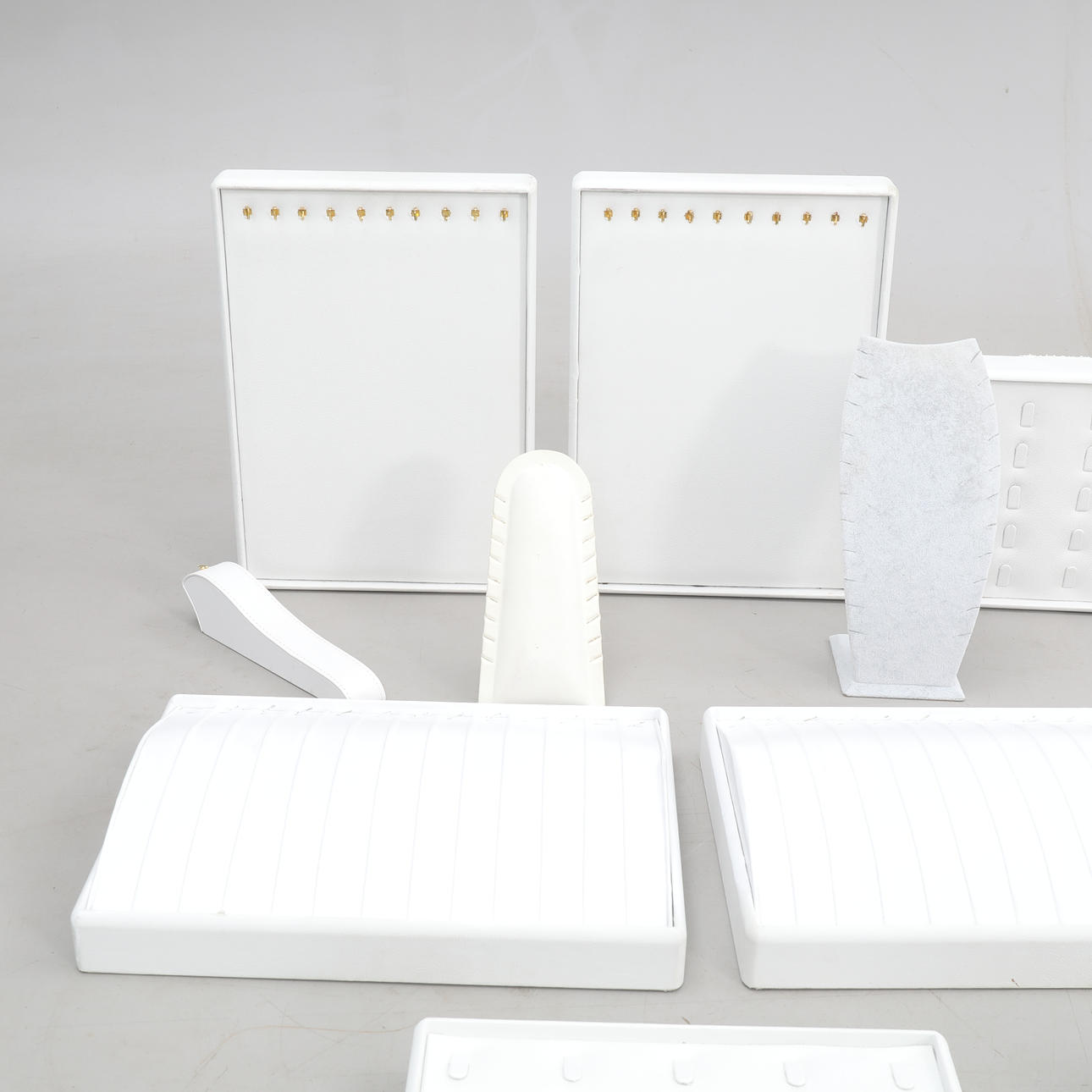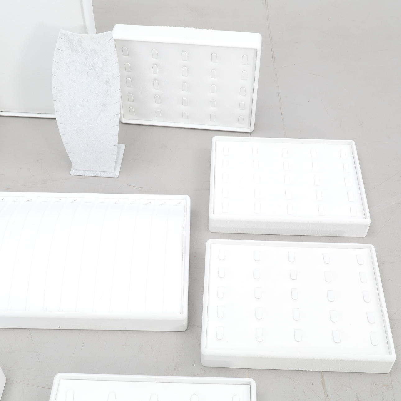 Ett parti med 9 stycken olika smyckeskassetter för halsband, armband och ringar. 3 stycken övriga displays.