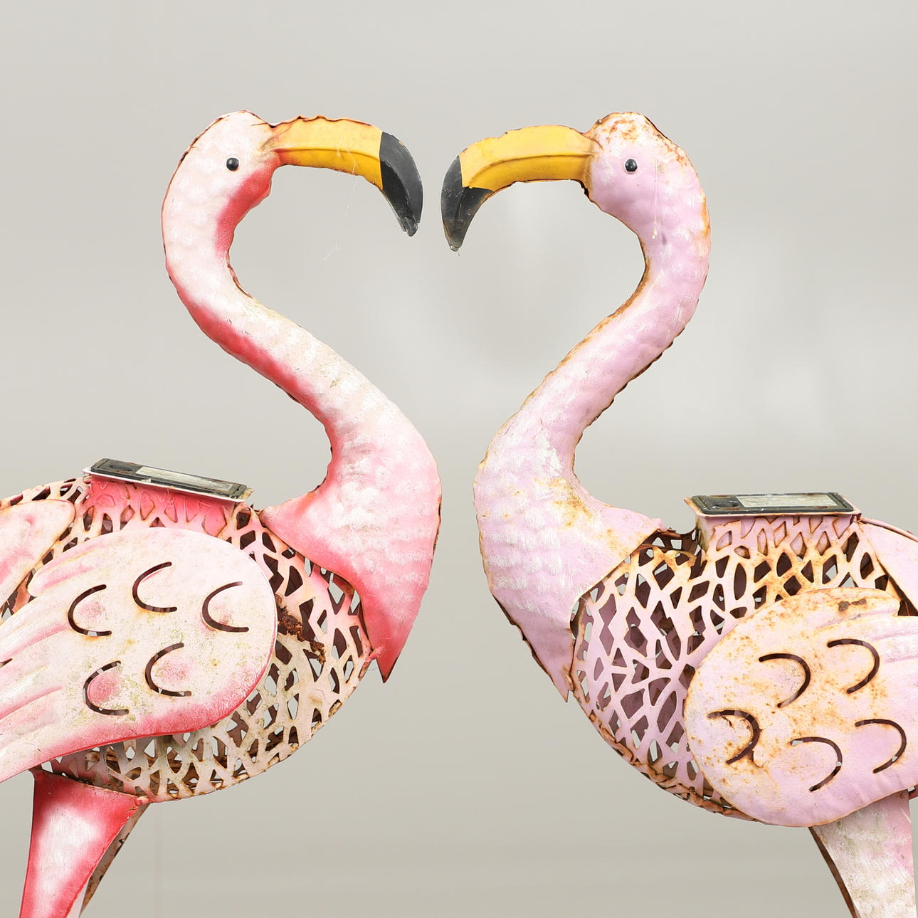 ETT PAR TRÄDGÅRDSFLAMINGOS I METALL.