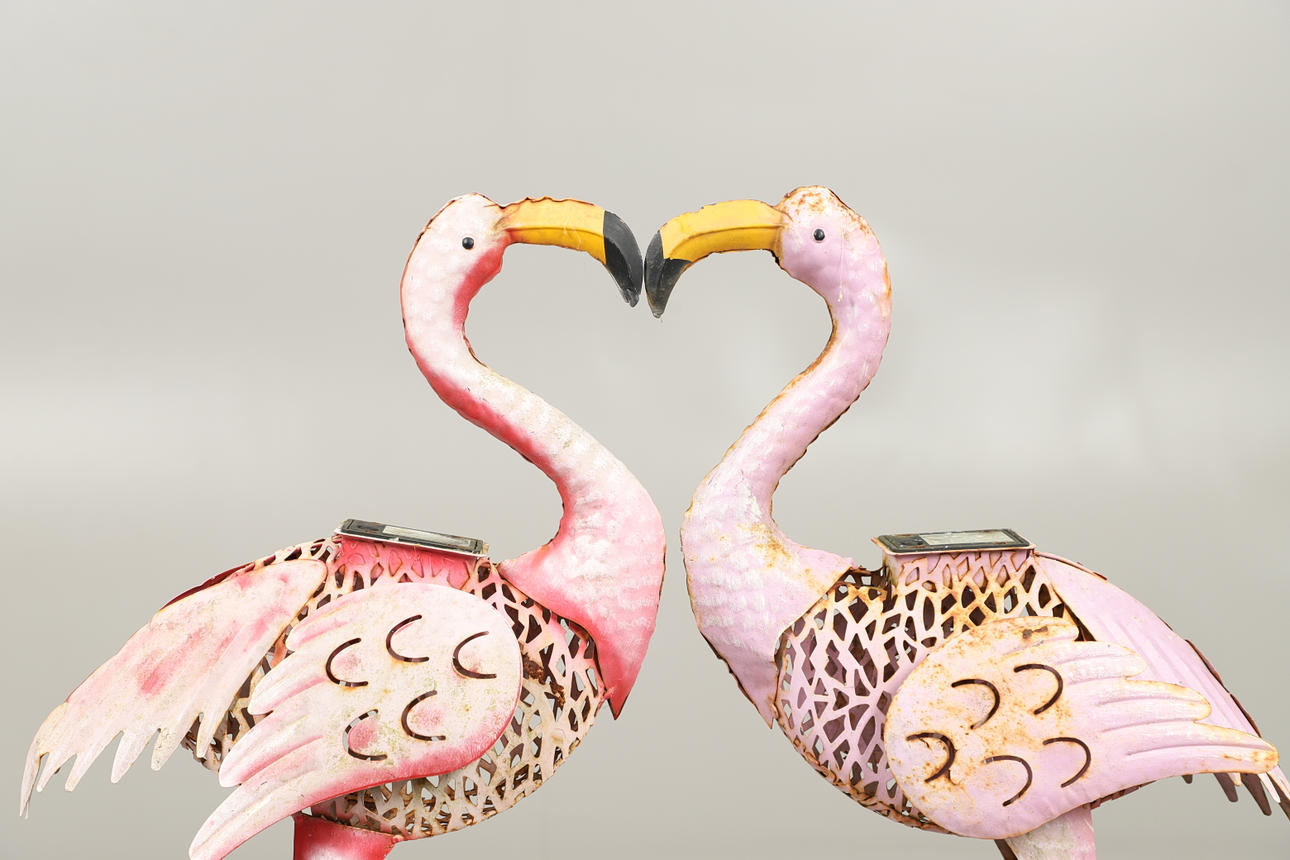 3332888. ETT PAR TRÄDGÅRDSFLAMINGOS I METALL.
