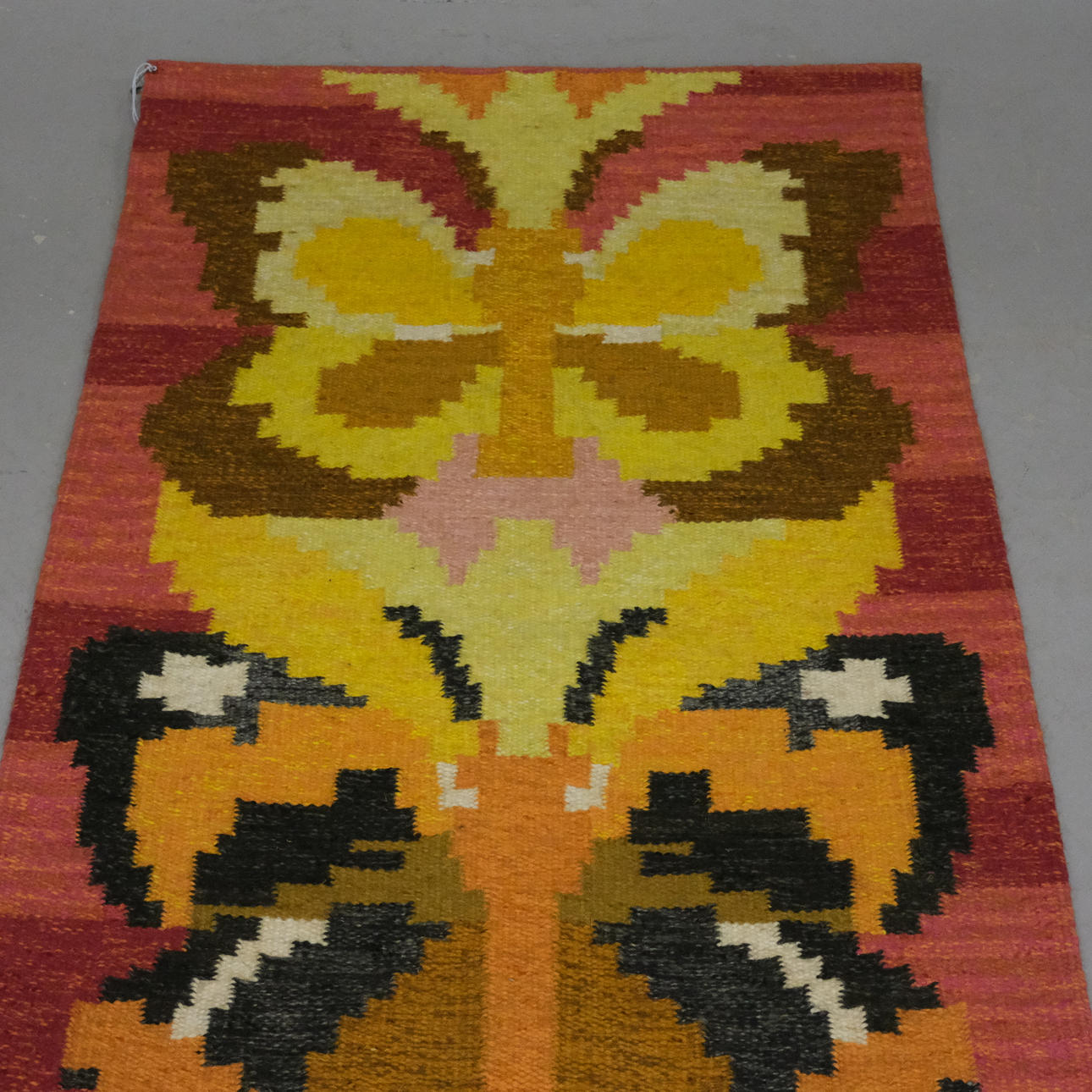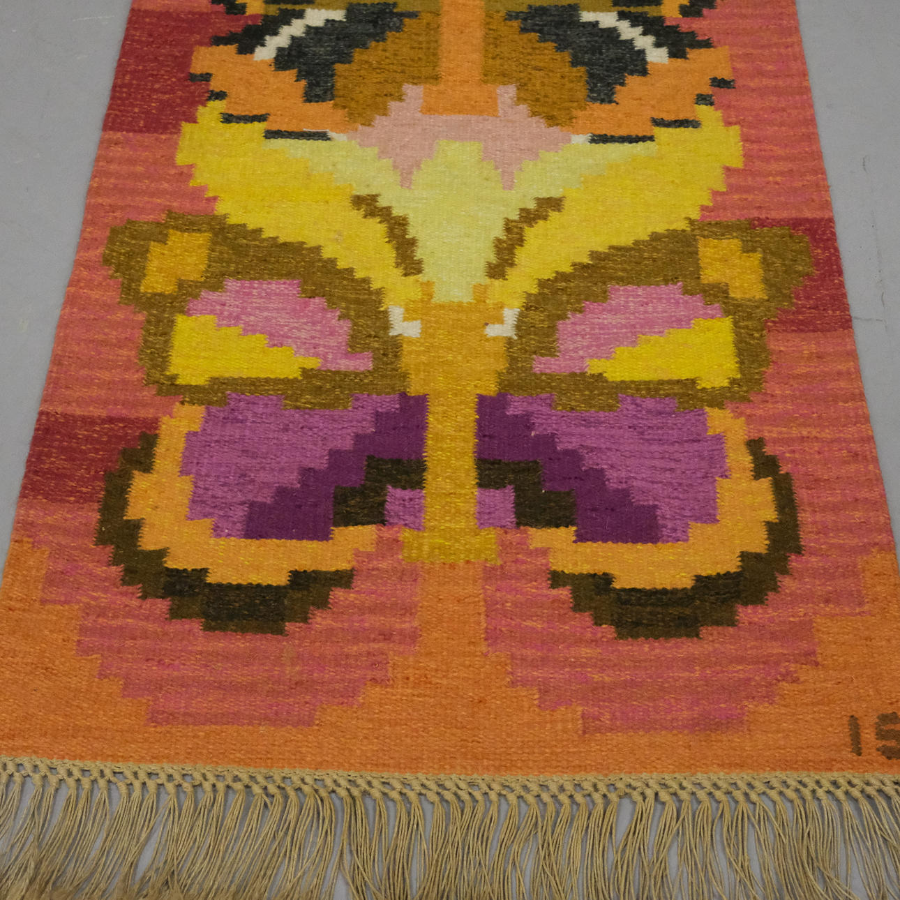 Ursprungligen matta. Motiv med fjärilar. Monogramsignerad. Mått: ca 170 x 68 cm.