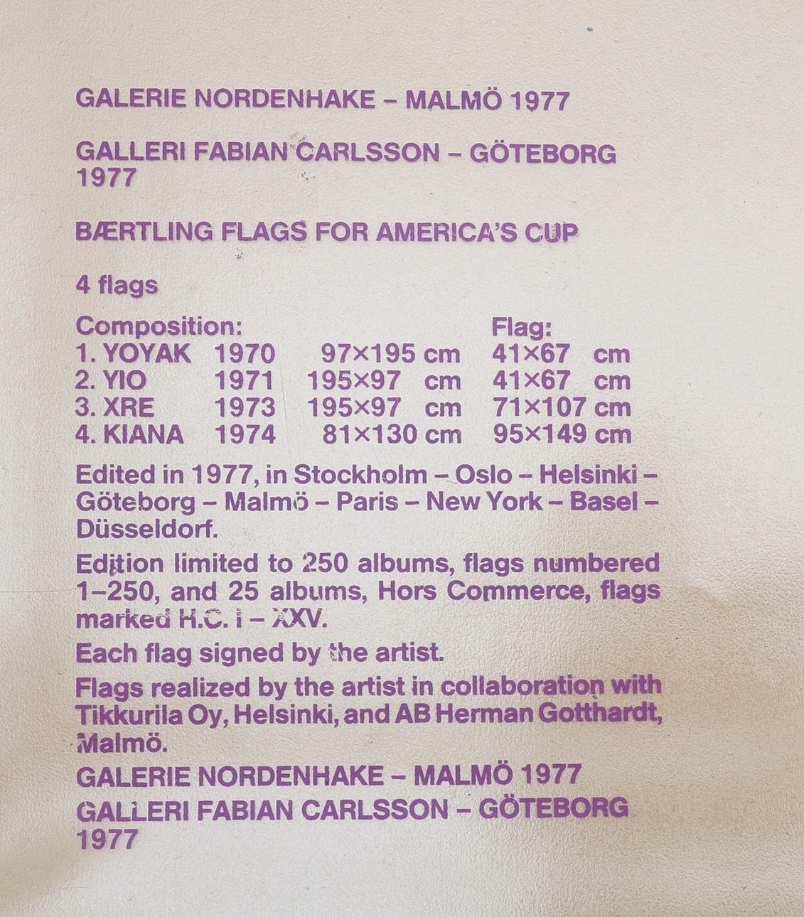 3340598. OLLE BAERTLING. "FLAGS FOR AMERICAS CUP", 1977.