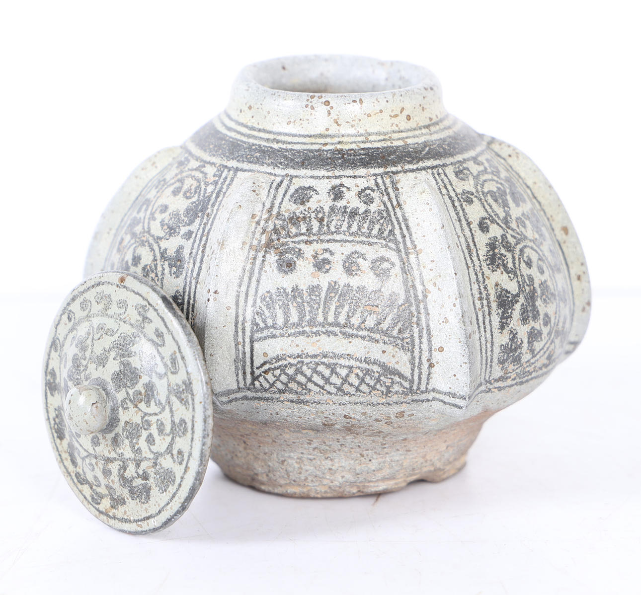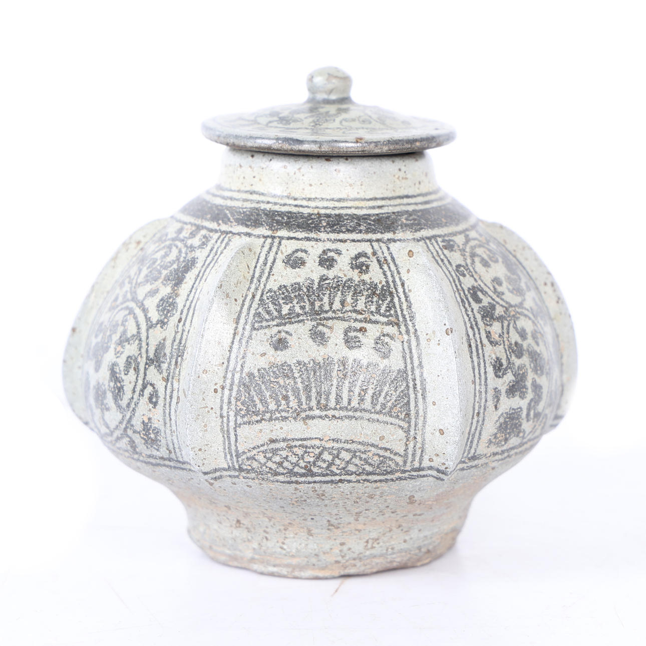 EN THAILÄNDSK STENGODSGRYTA OCH LOCK SAWANKHALOK.