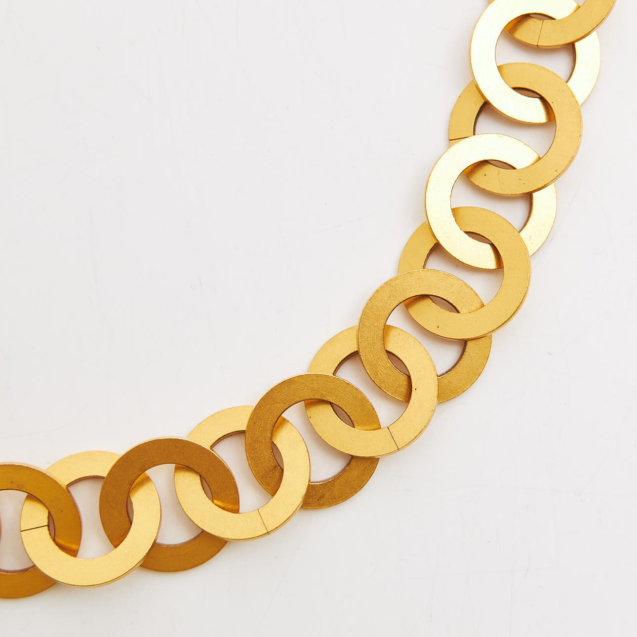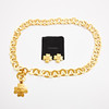 I guldfärgad metall, skärp av runda länkar, längst ut blomma med CC-logga i mitten, örhängen i clips, föreställande blomma med logga, baktill märkt Chanel 95 P made in France, kollektion vår 1995, ask medföljer, örhängenas mått ca 3x3, skärpets totala längd 100cm.