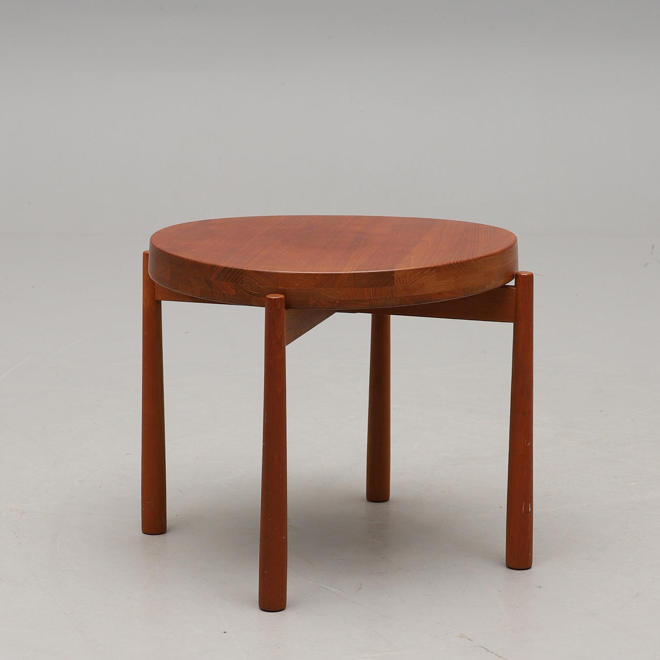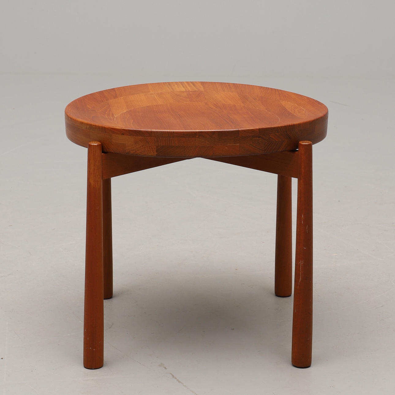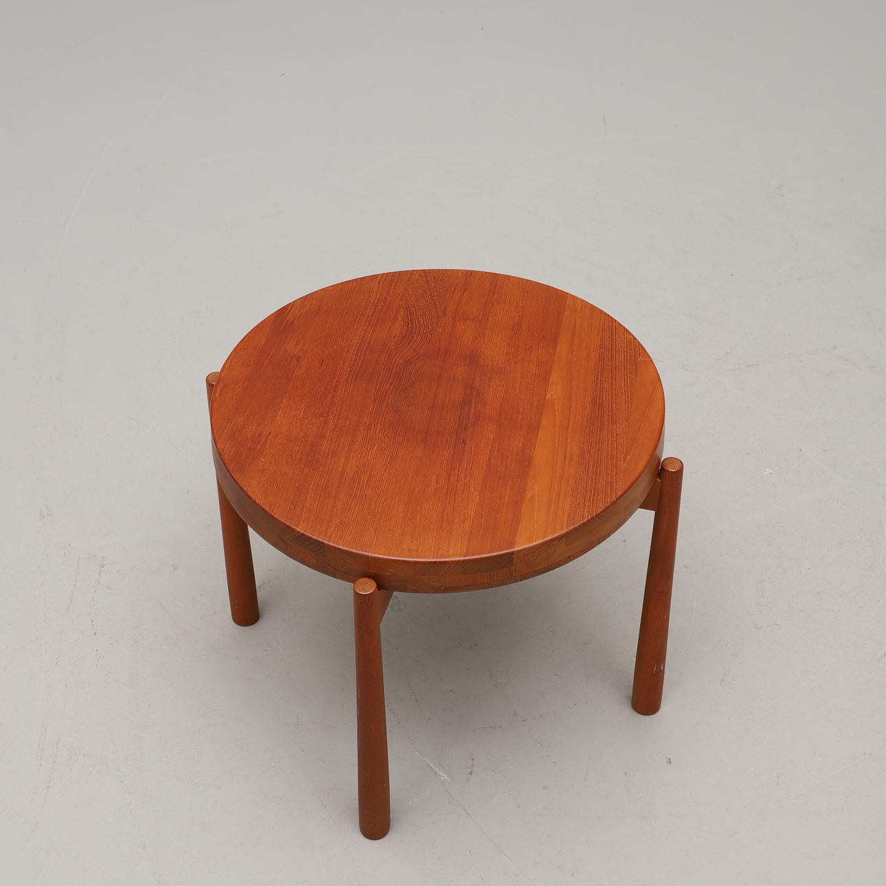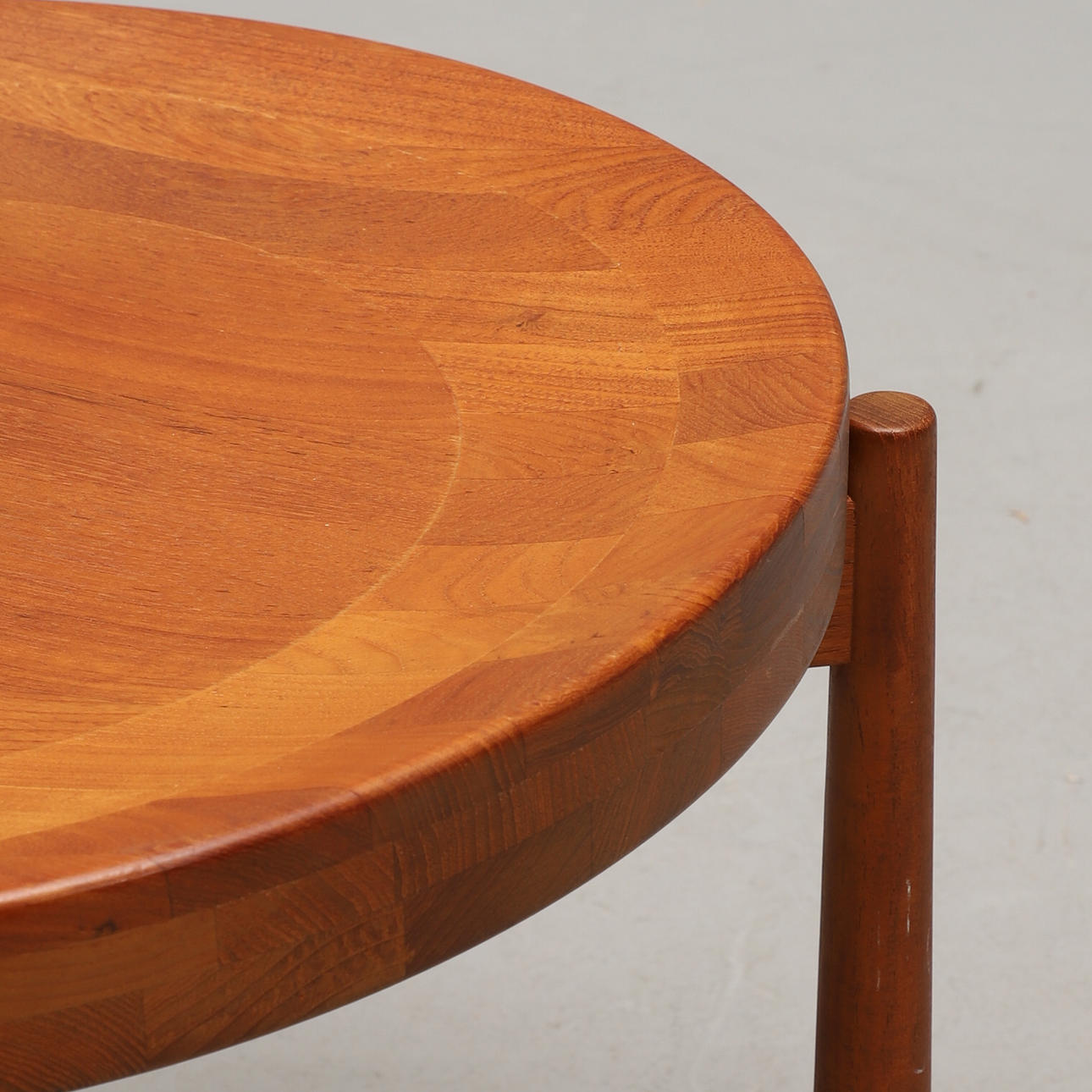 Teak. Vändbar bricka. Diameter 50, höjd 45 cm.