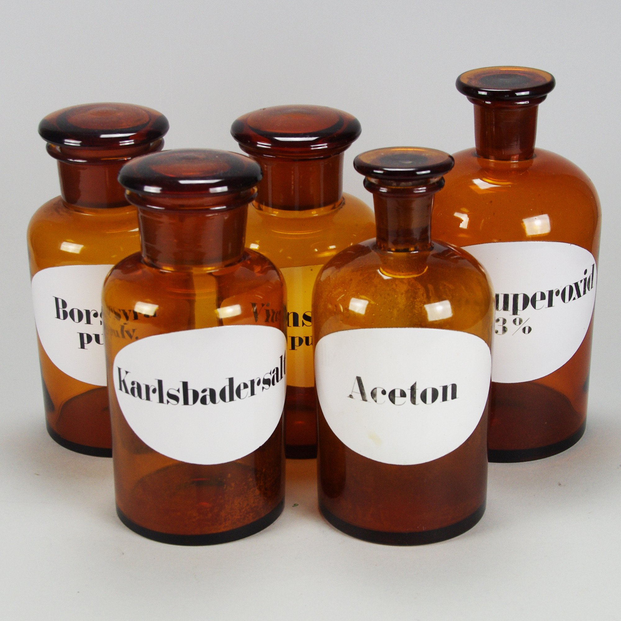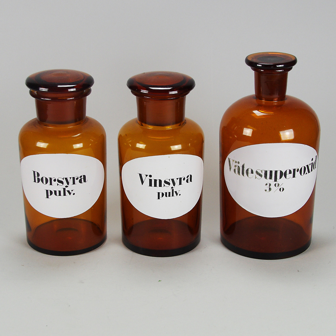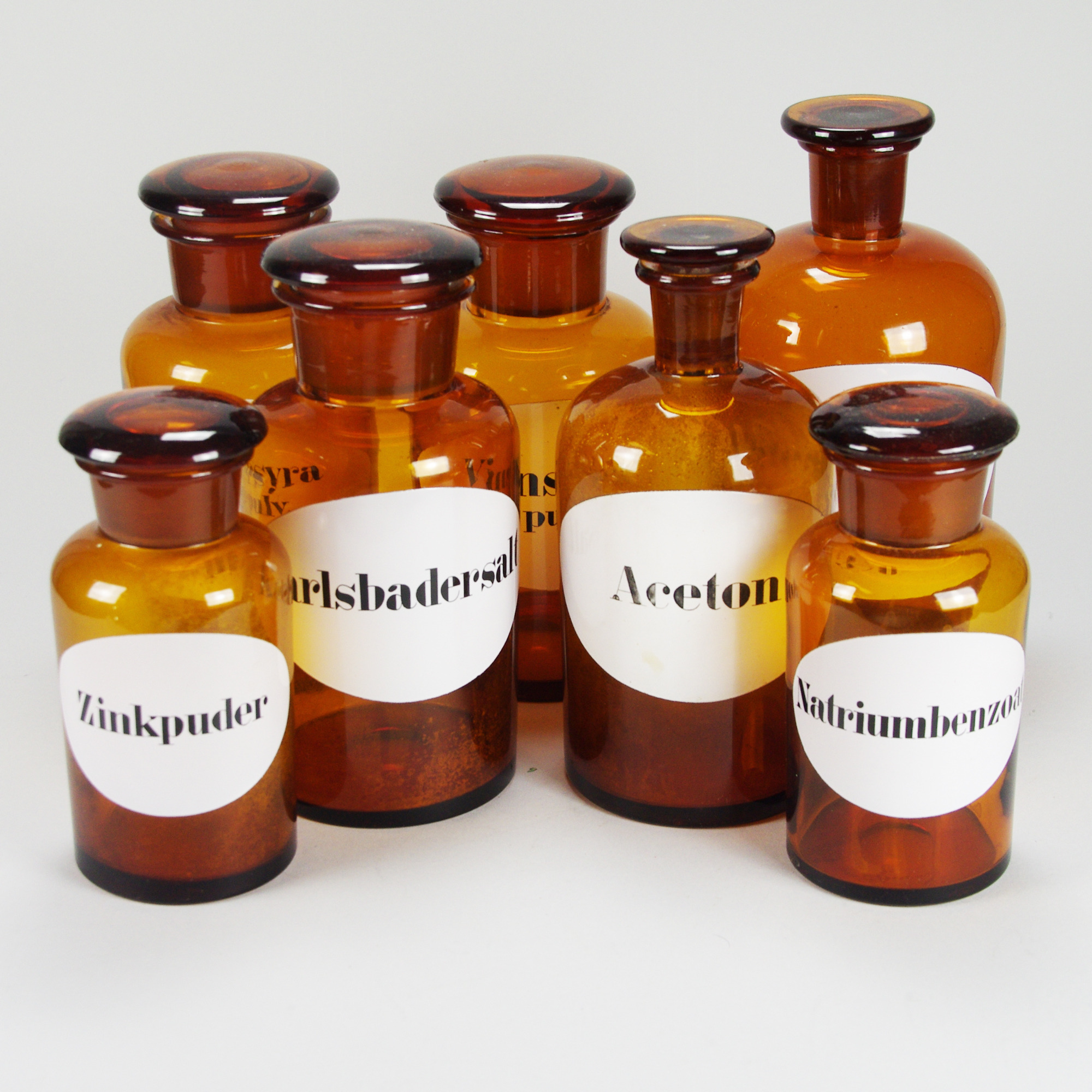 334636. APOTEKSFLASKOR, 7 stycken, brunt glas.