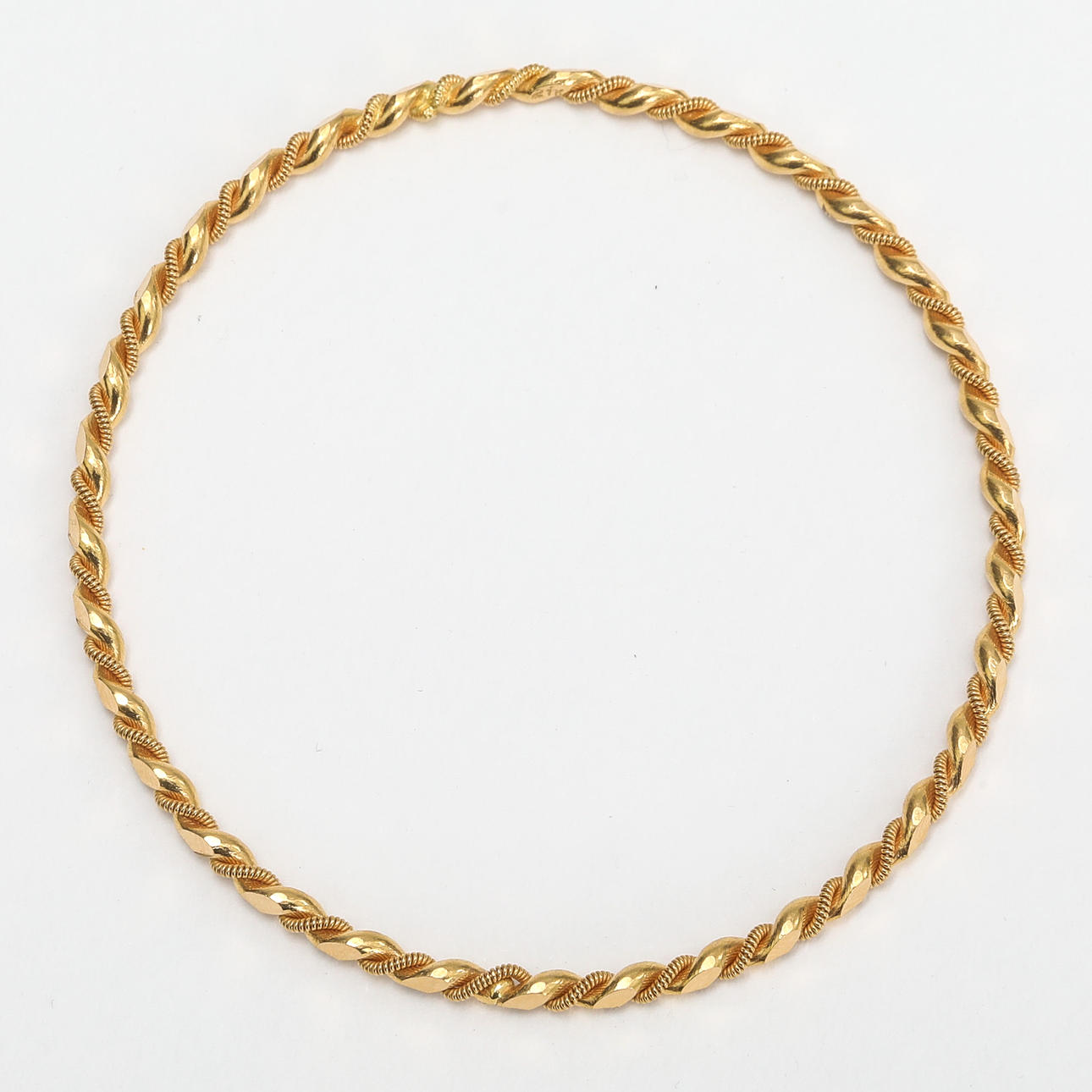 Armring i 21k guld, ca 18,08 gram. Diameter ca 7,5 cm, bredd ca 3 mm. Stämplar, se bild.