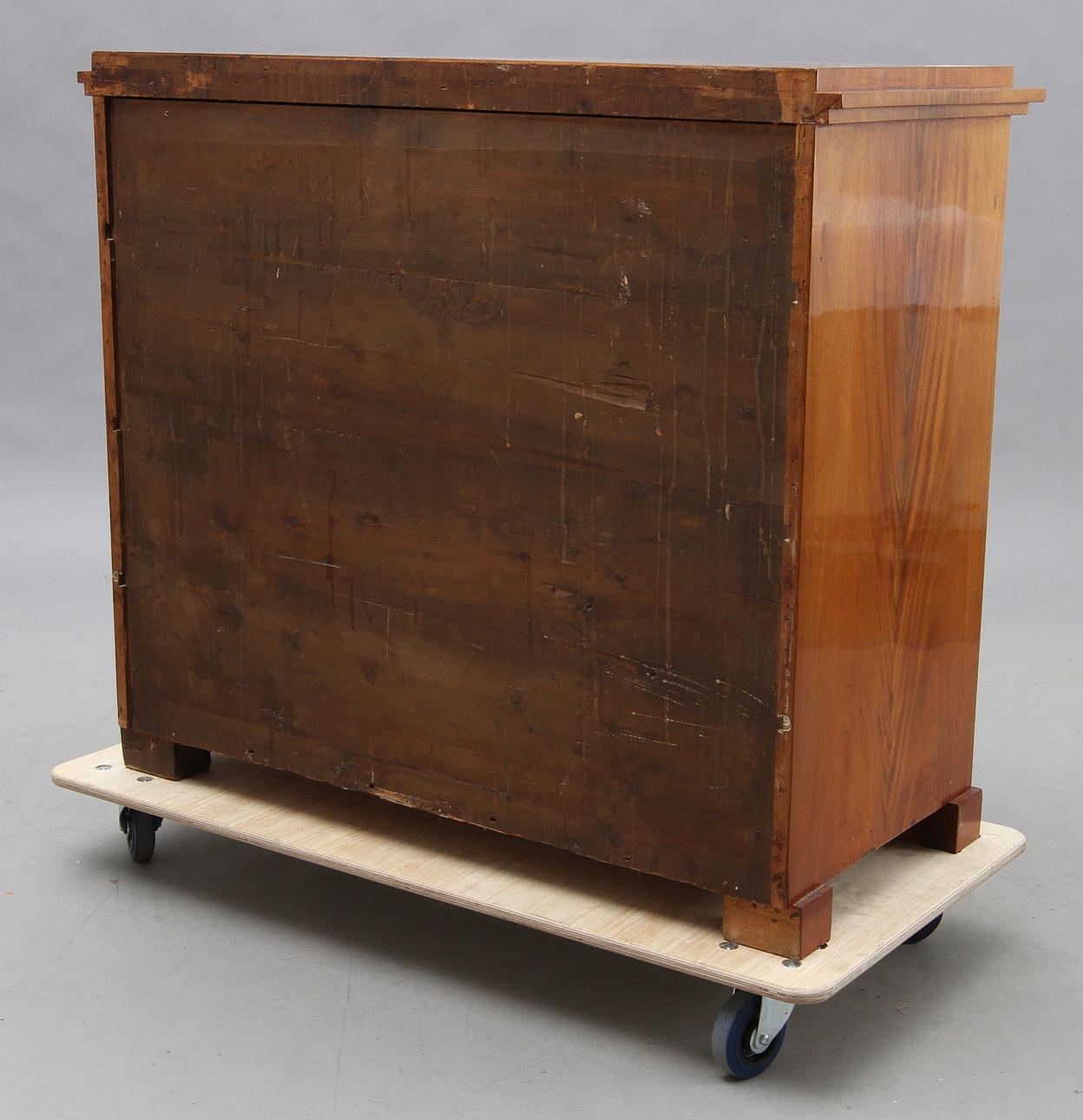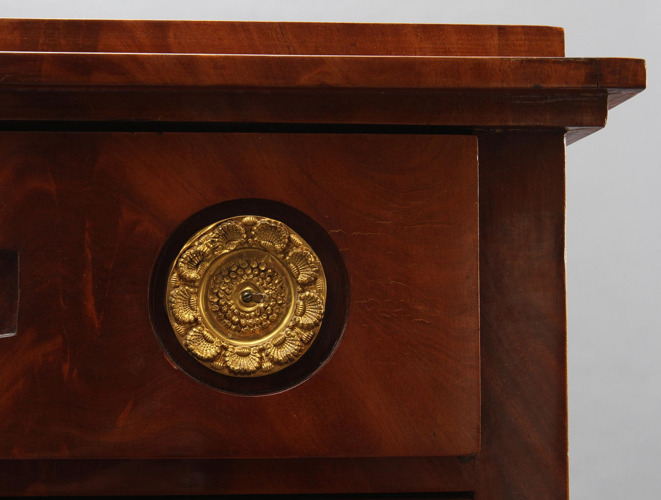 Mahogny. Beslag i mässing. Fyra lådor. Längd 109, bredd 52, höjd 96 cm.