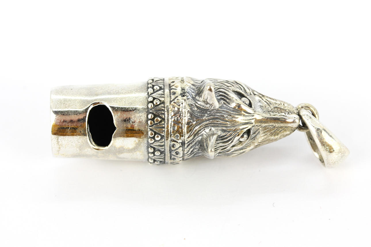 VISSELPIPA, sterlingsilver formad som ett varghuvud, L. 4.5cm.