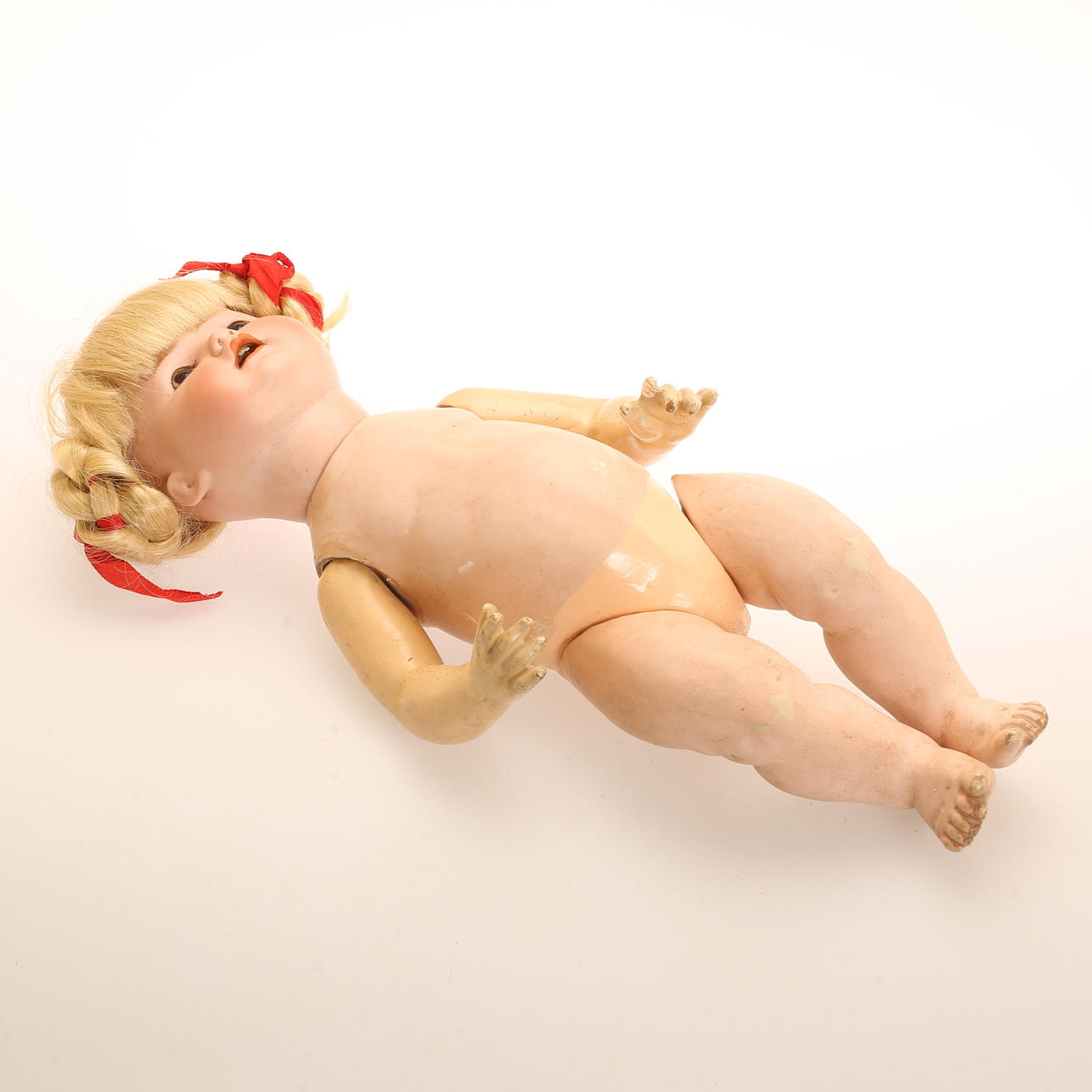 DOCKA, porslin och celluloid märkt HE, 1900-tal.