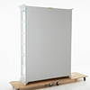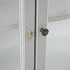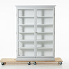 Vitmålad, sidor och dörrar i glas, fem hyllplan, mått ca 210, 150x40cm.