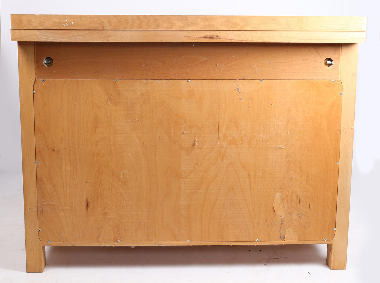 KÖKSSKÄNK, 1900-tal, med rektangulär topp med galleri ovanför två lådor och ett öppet urtag med en enda hylla, 120cm bred 61cm djup 95cm hög.