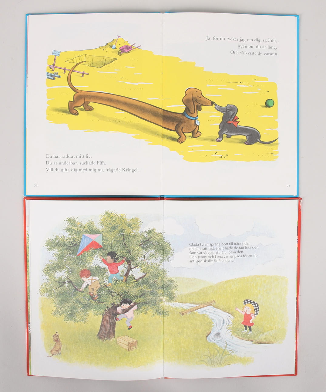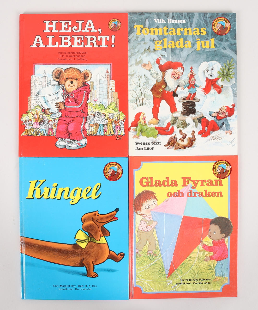 Bl.a. Babars slott, Tummelisa, Sagan om den nyfikna Aborren och Tomtarnas glada jul.