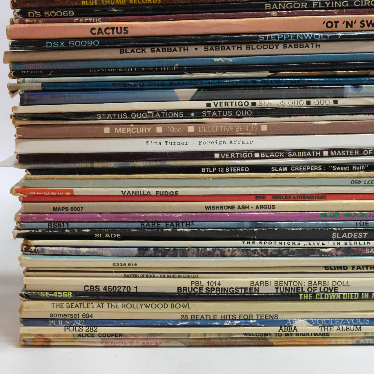 146 LP skivor, bl.a The Hollies, Beatles, Kinks, Jimi Hendrix, Queen, Rolling Stones, Nazareth.